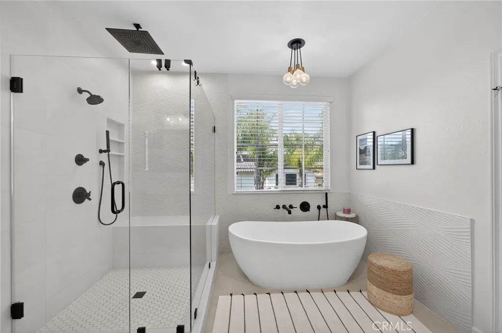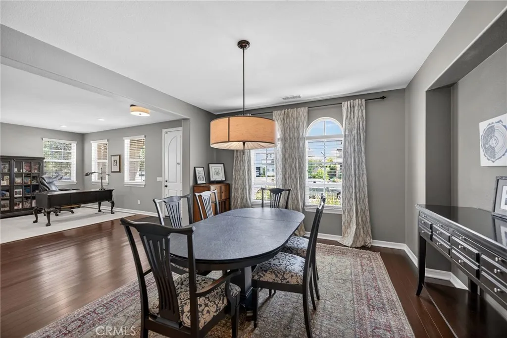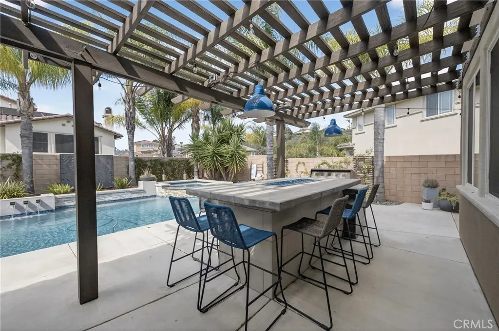 Welcome to an exceptional residence in the highly sought-after Redwood Collection of Wolf Creek, tucked away on a quiet cul-de-sac in South Temecula. Offering over 4,000 square feet of well-designed, thoughtfully updated living space, this 5-bedroom, 4.5-bathroom home, complete with a private office, blends timeless elegance with everyday comfort. A beautifully landscaped front yard welcomes you inside to formal living and dining spaces designed for both intimate gatherings and elevated entertaining. Rich bamboo flooring leads you into the heart of the home, where the family room invites you to relax by the fireplace while staying seamlessly connected to the kitchen. The chef’s kitchen is both stylish and functional, featuring quartzite countertops, stainless steel appliances, oversized island, and a 6-burner gas cooktop. A built-in study area in the breakfast nook adds convenience for work or creative projects, while the butler’s pantry offers a seamless connection to the formal dining room. The main level also includes a private bedroom with an updated ensuite bath and direct backyard access, ideal for guests, a home office, or flexible living. A powder room with limestone countertops adds a refined touch. Upstairs, the primary suite offers a true retreat with dual walk-in closets and a beautifully upgraded bath featuring separate vanities, a soaking tub, and a spa-inspired walk-in shower with multiple shower features designed for a relaxing, resort-like experience. A spacious office provides additional living space, while three secondary bedrooms and two updated secondary bathrooms offer comfort and versatility. Step outside to a backyard designed for unforgettable moments. Host gatherings around the BBQ island complete with grill and refrigerator. Enjoy evenings around the island with generous seating for eight, where a central fire feature creates a warm ambient space for conversation. The saltwater pool and oversized spa make for a private resort feel, complemented by a stunning outdoor living area with fireplace and a grass yard for added flexibility. Living in Wolf Creek means access to top-rated schools, scenic walking trails, parks, and resort-style amenities. All just minutes from Temecula’s renowned wine country, golf courses, shopping, and dining. This is more than a home, it’s a lifestyle defined by comfort, connection, and elevated living.