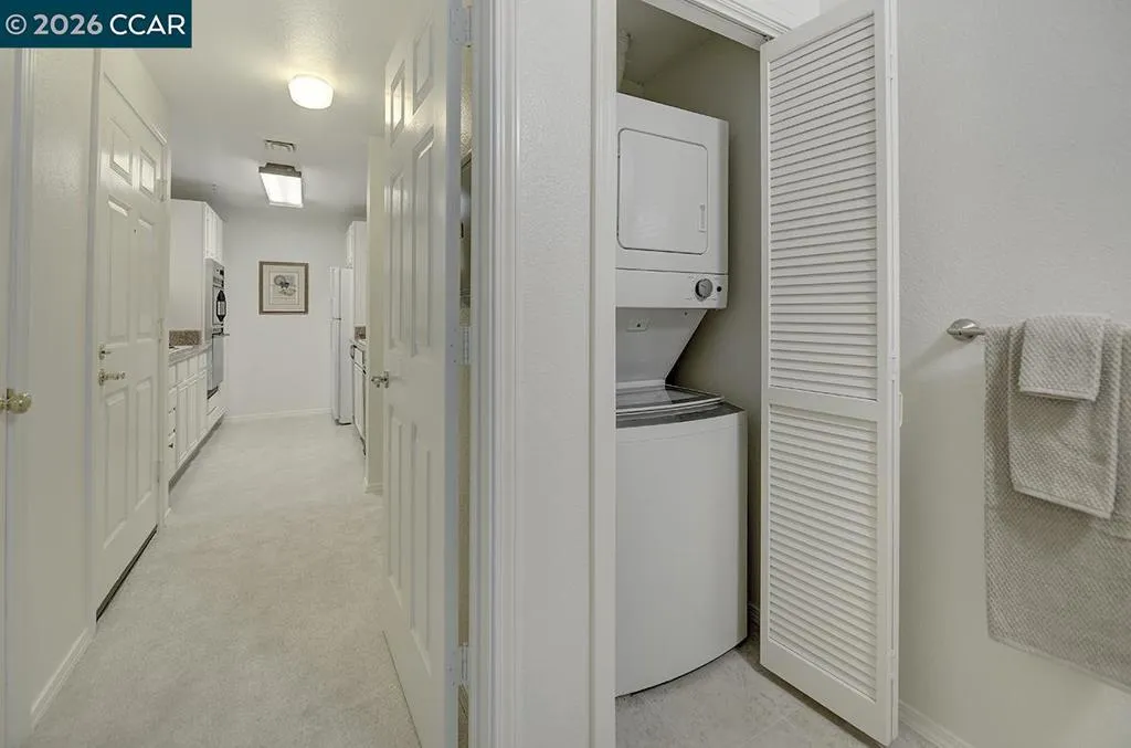 This beautifully updated first-floor Rosedown model in The Waterford combines style, comfort, and convenience. The light-filled two-bedroom, one-and-a-half-bath floorplan features new carpet, fresh neutral paint, and granite countertops in the kitchen. The closet in the second bedroom has been removed over time, offering additional flexibility for use as an office or den. Ideally located close to the building entry and just a short distance from the fitness center and covered pool, this home provides easy access throughout the community. Parking space #68 is included. Residents enjoy a daily meal in the elegant Dining Room and benefit from weekly housekeeping services. The Waterford’s active community offers a wide variety of activities, including bridge, movies, exercise classes, and more. Just a short distance away, the Gateway Center provides additional amenities such as a library, art and woodworking studios, a billiards hall, and lively social gatherings.