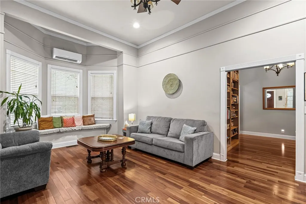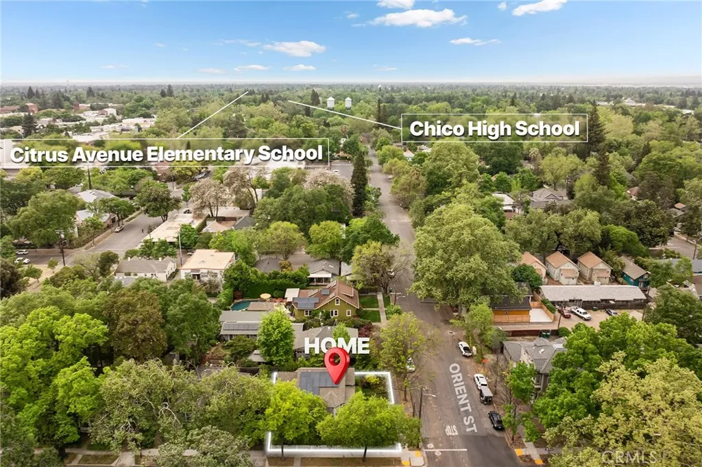 Welcome to this storybook home that blends classic Chico character with updated amenities. A white picket fence, cobblestone pathways, mature landscaping and an inviting front porch set the tone before you step inside the mahogany door. Soaring ceilings and rich floors enhance the bright, spacious living room, anchored by a large bay window perfect for sunlight and reading nooks. The dining area and kitchen are ideal for entertaining, featuring white cabinetry, white appliances and a built-in buffet. Three roomy bedrooms offer updated flooring and high ceilings for an airy feel. The bathroom is timeless with black-and-white tile and a new shower. Thoughtful details include crown molding, wood-paneled doors, dual-pane windows with blinds, and convenient indoor laundry. Outside, the fully gated backyard provides privacy and a generous patio for relaxing, BBQs or weekend brunches. Excellent location—just moments from Bidwell Park and Downtown Chico. A beautifully maintained home with timeless curb appeal and modern livability.