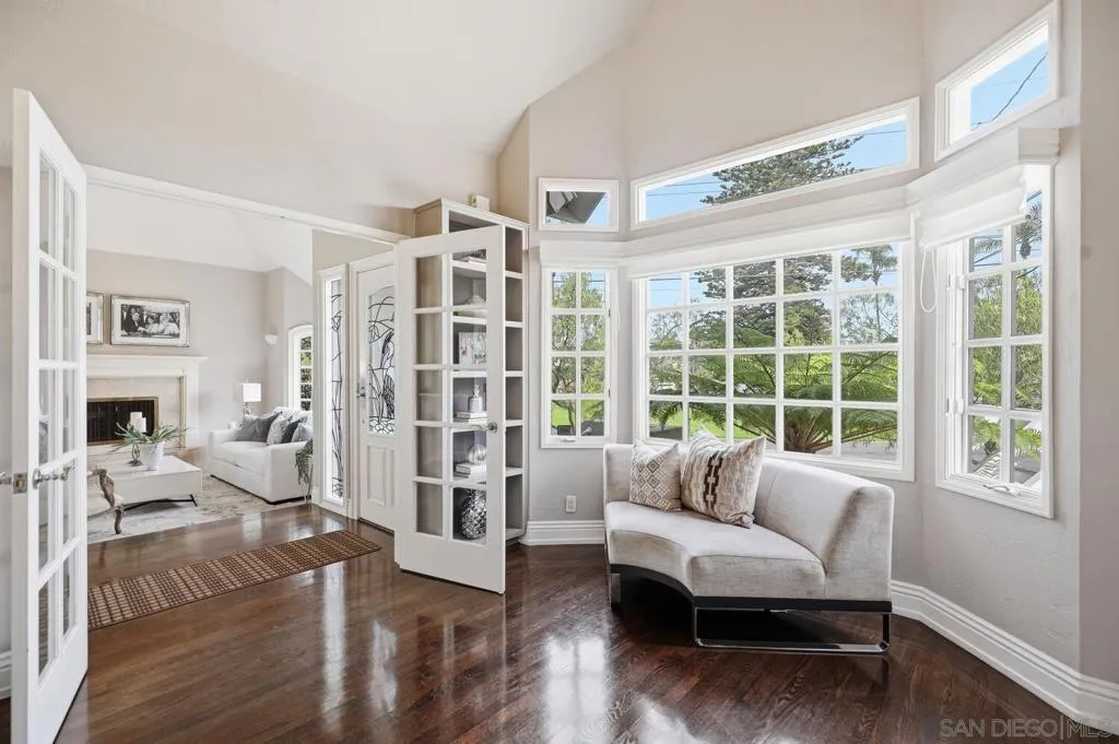 A rare opportunity to own a truly special home in the heart of Coronado, this exceptional residence blends timeless elegance with thoughtful design and an unbeatable location. Tucked away on a quiet street just across from Bay Circle Park, the home offers a peaceful setting while remaining moments from the best of the island.Designed with a reverse floorplan to maximize its breathtaking surroundings, the upper level showcases a stunning view deck with sweeping vistas of Glorietta Bay, the Coronado Golf Course, and the iconic Hotel del Coronado. It’s the perfect setting for entertaining or simply enjoying Coronado’s signature sunsets.Inside, the home features four spacious en-suite bedrooms and a functional office, including a full bedroom and bath on the main living level, complemented by a versatile loft—ideal for guests, a home office, or additional lounge space. Vaulted ceilings and expansive windows fill the living areas with natural light, creating a bright and airy ambiance throughout. A formal living room and separate great room provide both elegant entertaining spaces and comfortable everyday living.The primary suite is a true retreat, highlighted by incredible dual closets offering abundant storage and a sense of luxury. Opening to a private backyard, a perfect sanctuary to enjoy the sunshine and breezes.Every detail has been thoughtfully curated to enhance both functionality and style, resulting in a home that feels elevated yet welcoming.With its premier location, exceptional layout, and captivating views, this is an amazing opportunity!