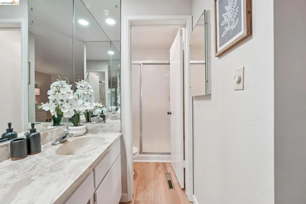 Tucked into the peaceful, tree-lined Rubicon community, this desirable ground-floor condo offers comfort, style, and exciting potential to make it your own. Surrounded by majestic redwoods & lush greenery, the setting feels like a private retreat while still being close to everything Danville has to offer. Step inside to find beautiful new vinyl plank flooring throughout, complemented by fresh interior paint and pretty new light fixtures that give the home a clean, updated feel. The spacious layout includes a primary suite with a walk-in closet, a secondary bedroom, full 2nd bathroom, plus a rare and highly sought-after 3rd room—perfect for a home office, guest space, or 3rd bedroom. The living area is filled with natural light and features a cozy fireplace along with sliding glass doors that lead to a private patio—an ideal spot to relax & enjoy the tranquil surroundings of redwoods & nearby water features. The kitchen & bathrooms are functional and ready for your vision, offering a fantastic opportunity to personalize & design finishes that reflect your own style. Complete with in-unit laundry, private parking & located just minutes from Downtown Danville’s shops, dining, and charm, this home blends move-in-ready updates with the chance to create something truly special.