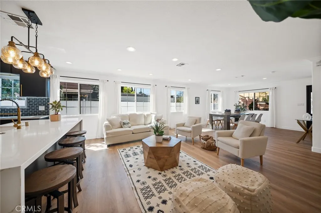 This beautifully remodeled home is located in the vibrant city of Hollywood and features a bright, open floor plan enhanced by abundant recessed lighting. Recent upgrades include a modern kitchen with sleek stainless steel appliances, new laminate flooring throughout, stylishly updated bathrooms, and upgraded plumbing for both the kitchen and bathrooms for added efficiency and reliability. The home offers four spacious bedrooms filled with natural light from large windows, creating a warm and inviting atmosphere. The expansive main living area flows seamlessly into the redesigned kitchen, making it perfect for entertaining and everyday living. The backyard features a versatile bonus room ideal for a home office or flexible use, along with a cozy seating area perfect for relaxing and a charming covered patio for outdoor dining or gatherings. The home has been freshly painted inside and out, while the front yard showcases new landscaping that enhances its curb appeal. Additional highlights include a brand-new gate and fencing and a long gated driveway leading to a secure front yard, providing both privacy and charm. Conveniently located just minutes from Melrose Avenue, Larchmont Village, the upcoming Echelon Studios, and a variety of shops, cafes, and entertainment, with easy access to the 101 freeway for effortless commuting throughout Los Angeles.