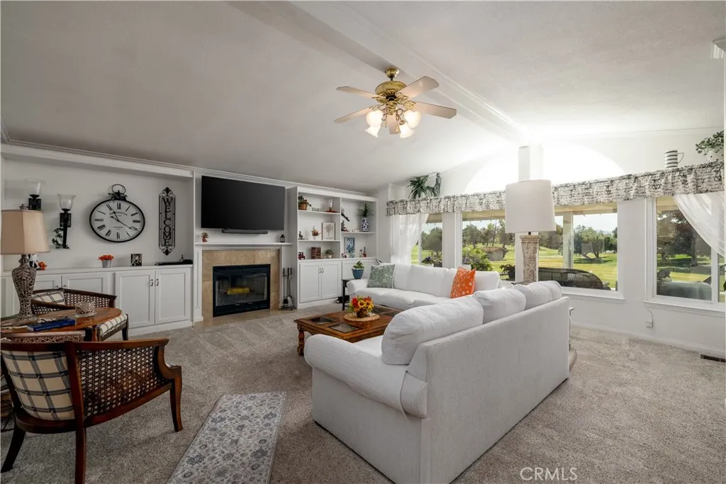 Welcome to resort-style living in the highly desirable 55+ community of Golf Knolls! This beautifully updated 2-bedroom, 2-bath home offers nearly 2,000 square feet of spacious, thoughtfully designed living — perfectly positioned on the golf course with stunning, unobstructed views. Enjoy peaceful mornings and breathtaking sunsets from your inviting front porch, overlooking lush fairways and serene surroundings. Inside, the light-filled open floor plan showcases custom touches throughout, blending comfort and style in every space. The dedicated office features built-in cabinetry and can easily be converted into a third bedroom, offering flexibility to fit your lifestyle. This move-in ready home includes newer appliances, modern updates, a 1-car garage, and an additional covered carport. Energy-efficient leased solar is in place and to be assumed by the buyer. Living in Golf Knolls means enjoying an active, vibrant lifestyle with exceptional amenities including a sparkling pool, relaxing spas, game room, library, meeting rooms, BBQ areas, fire pit, a full calendar of community events and more — all with low HOA dues. This is more than a home… it’s the lifestyle you’ve been waiting for.