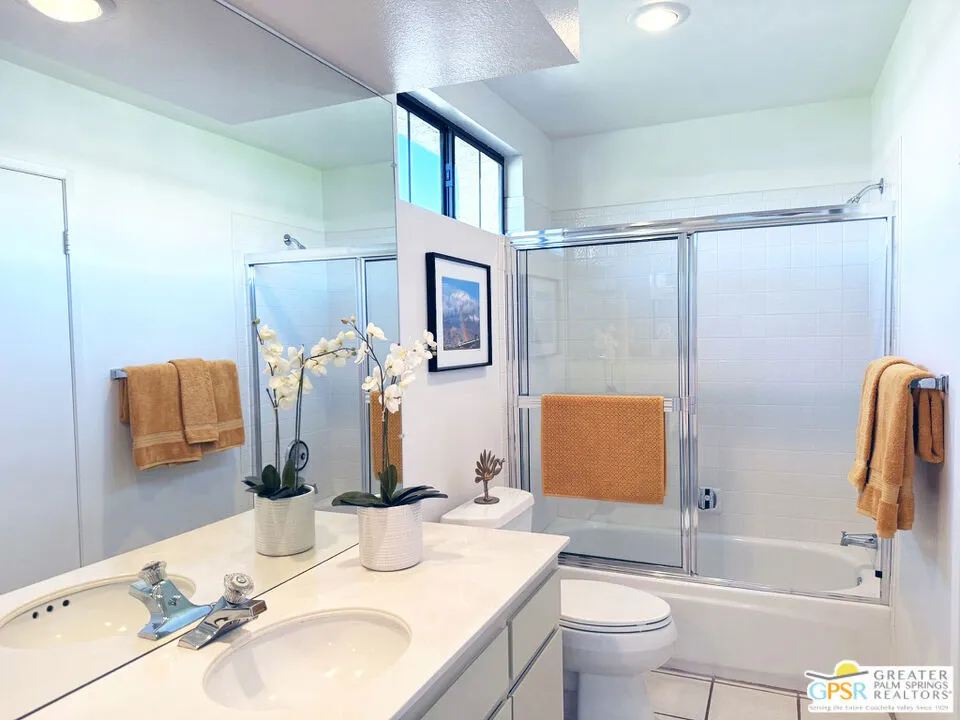 Welcome to relaxed desert living in this beautifully updated single-story condo located within the gated Cathedral Canyon Country Club. Ideally situated between Palm Springs and Palm Desert, this home offers a peaceful setting with the convenience of easy access to shopping, dining, and entertainment throughout the Coachella Valley. Inside the coveted single-story end unit, the home has been thoughtfully improved with a fresh, modern feel. Smooth ceilings, fresh interior paint, recessed lighting, updated flooring, new baseboards, contemporary ceiling fans, and upgraded electrical outlets create a clean and cohesive look throughout. The bright kitchen features recently updated stainless steel appliances and opens easily to the dining area and private outdoor patio, making the layout ideal for both everyday living and casual entertaining. The private patio offers a quiet outdoor retreat, perfect for morning coffee, dining al fresco, or unwinding at the end of the day under the desert sky. Surrounded by the community's lush landscaping and green space, this home captures the easygoing lifestyle that makes desert living so appealing. Cathedral Canyon Country Club residents enjoy a wide range of amenities, including multiple pools and spas, tennis courts, an 18-hole golf course, clubhouse, and beautifully maintained grounds, all set against a stunning mountain backdrop. The HOA adds tremendous value by covering exterior maintenance, roofs, cable and internet, landscaping, pools and spas, and gated security. The community is also pet-friendly, allowing up to three pets per household. Move-in ready and thoughtfully updated, this inviting condo offers comfort, style, and an exceptional opportunity to enjoy the best of desert living.