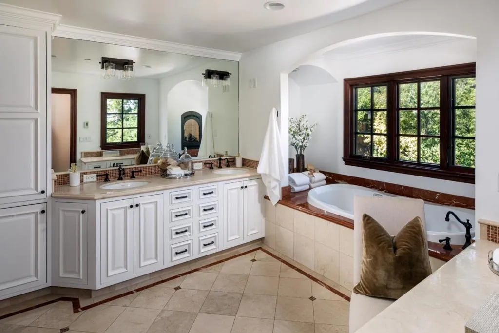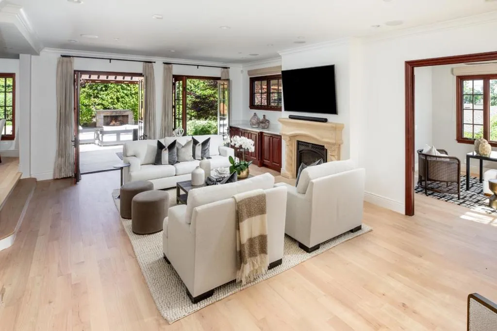 Expansive in scale and newly updated, this Mediterranean estate spans three levels with 4 bedrooms and 4.5 baths. Interiors feature refinished hardwood floors in a light matte hue and beautifully proportioned living spaces designed for both everyday comfort and entertaining. The newly updated kitchen is designer chic, complemented by a combination living room and family room with surround sound, formal dining room, plus a large recreation room on the lower level along with a cinema-quality theater. A private office or den adds to the appeal along with a newly updated full bath on the lower level, a main-level bedroom suite, and an upstairs primary suite with Bay views, plus two bedrooms and a bath. Outdoor living is equally inviting with multiple places for lounging and entertaining, including a large spa, fireplace terrace, premium sound system, and expansive outdoor kitchen. Two separate attached garages provide parking for 3 cars plus ample additional off-street parking. All of this is less than one mile from the downtown Los Altos Village and with access to excellent Los Altos schools.