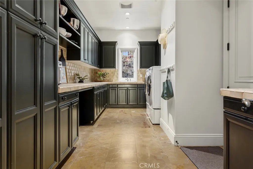 A rare masterpiece perched above the Pacific, this extraordinary estate commands unparalleled panoramic ocean, coastline, and canyon views from one of the most coveted addresses in San Clemente. Set on a private, pie-shaped lot along a premier cul-de-sac within Talega's exclusive gated Lucia enclave, with private park access and beaches just minutes away, this is a once-in-a-generation opportunity to own over 6,000 square feet of architectural grandeur where every room is a celebration of light, space, and vista. A soaring, circular foyer sets the tone, with Brazilian marble floors flowing through gracious entertaining spaces. The formal dining room is served by a temperature-controlled 1,000-bottle wine cellar and a bespoke speakeasy bar. In the great room, vaulted open-beamed ceilings and fireplace open to a reimagined gourmet kitchen featuring a dramatic 17-foot quartz island, Sub-Zero and Thermador appliances, and eat-in dining space. Expansive 15-foot LaCantina doors dissolve the boundary between indoors and out, drawing the eye across endless ocean views and a beautifully remodeled courtyard. A main-level suite with private exterior access is the perfect option for multi-generational living, a second primary suite, or luxurious guest quarters. Dual laundry rooms bring convenience to every floor. Upstairs, four bedroom suites offer private baths and custom closets. The primary suite is a sanctuary, featuring an exclusive view deck, fireplace retreat, dual walk-in closets, and a spa-like bath with floor-to-ceiling quartz rainfall shower. An office with loggia and bonus room with deck complete the upper level, accented by custom window treatments and Juliet balconies. Outside, the grounds rival a private resort. An elevated saltwater pool and spa with rock waterslide are surrounded by an expansive travertine sundeck, a fire pit with built-in dining, full outdoor kitchen, shaded cabana with smart TV, and a fenced dog run, all framed by signature panoramic views. Notable upgrades include a Ring security and alarm system, reverse osmosis kitchen filtration, and whole-home water softener. Talega's resort-caliber amenities are moments away, including 19+ miles of trails, the Swim and Athletic Club, pools, tennis, parks, and the Fred Couples-designed Talega Golf Course, with top-rated Capistrano Unified schools, beaches, and shopping all within easy reach. A true estate property where world-class views, masterful design, and an unmatched location converge.