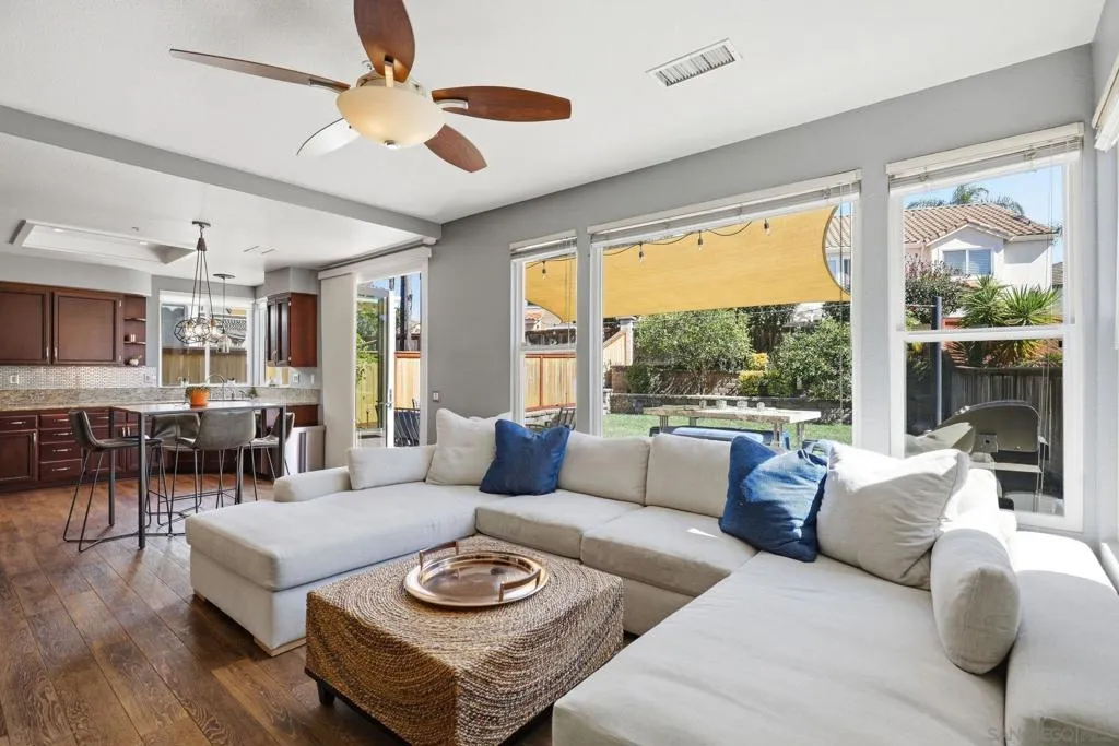 Welcome home! Located in the highly desirable guard-gated community of Emerald Heights, 2471 Bear Rock Glen is exactly what you've been waiting for. Featuring an open floor plan with a spacious entertainers backyard and beautiful upgrades throughout, you feel a sense of harmony as soon as you step through the front door. The primary retreat enjoys beautiful views overlooking the manicured yard and not only does the home look stunning aesthetically, the majority of the systems are all newer and extremely well maintained. The home offers an owned 4.68 kW solar panel system, a tankless hot water heater, brand new HVAC system, new EV charger, water softener, ring doorbell and security cameras, high quality wood-like porcelain tile flooring, natural gas fire pit and multiple fruit bearing citrus trees among an extensive list of other wonderful features. The Emerald Heights HOA also includes a newly renovated clubhouse, multiple sports courts, a gym, pool/spa and playground. Located within the award winning San Marcos Unified School District, this home has it all. You truly do not want to miss out on this incredible opportunity!