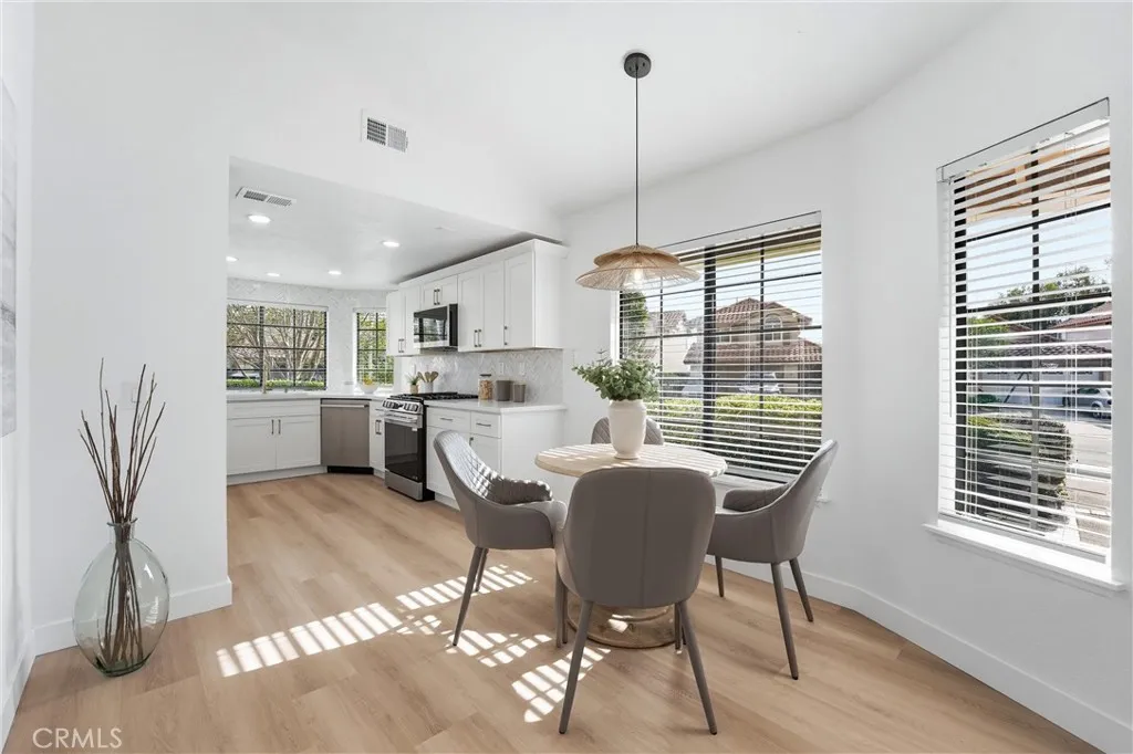 Welcome to this beautifully upgraded single-story home, ideally situated on a desirable corner lot in the heart of Rancho Santa Margarita. Thoughtfully renovated and move-in ready, this residence blends modern design with everyday comfort in one of Orange County’s most sought-after communities. Step inside to find all-new luxury vinyl plank flooring, fresh interior paint, and an open, light-filled layout enhanced by new recessed lighting and ceiling fans throughout. The fully remodeled kitchen serves as the centerpiece of the home, featuring new cabinetry with soft-close drawers, sleek quartz countertops, a herringbone marble backsplash, and stainless steel appliances, creating a clean and functional space for both daily living and entertaining. Both bathrooms have been tastefully updated, including a refreshed guest bath and a beautifully redesigned primary bathroom complete with new vanities, fixtures, and a modern shower. The corner lot location offers a rare wrap-around backyard with ample space for outdoor dining, entertaining, or simply enjoying the Southern California lifestyle. Whether hosting gatherings or relaxing in your own private setting, the outdoor space adds a unique dimension to the home. Beyond the property itself, the Rancho Santa Margarita lifestyle is hard to match. Residents enjoy access to resort-style HOA amenities including pools, a beach club and lagoon, clubhouse, tennis and pickleball courts, parks, sports fields, and community events. Just moments away, Rancho Santa Margarita Lake offers scenic walking paths, dining, and a true community hub. Outdoor enthusiasts will appreciate nearby O’Neill Regional Park and the area’s extensive trail system for hiking and biking. Conveniently located near shopping, dining, and highly regarded local schools, this home offers both comfort and accessibility. Known for its safety, strong sense of community, and picturesque surroundings, Rancho Santa Margarita delivers a peaceful, small-town feel while remaining close to everything Orange County has to offer. Here is your opportunity to enjoy one of Southern California’s most connected and welcoming communities.