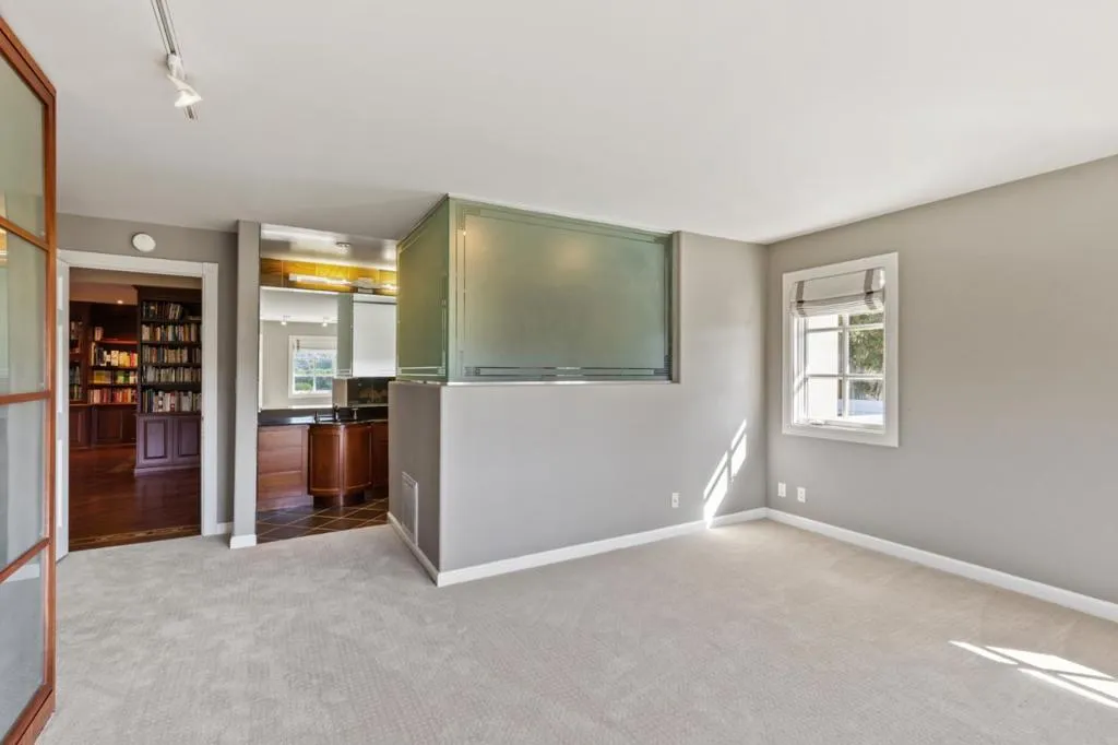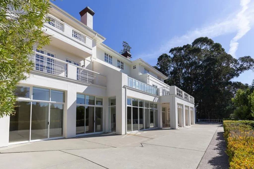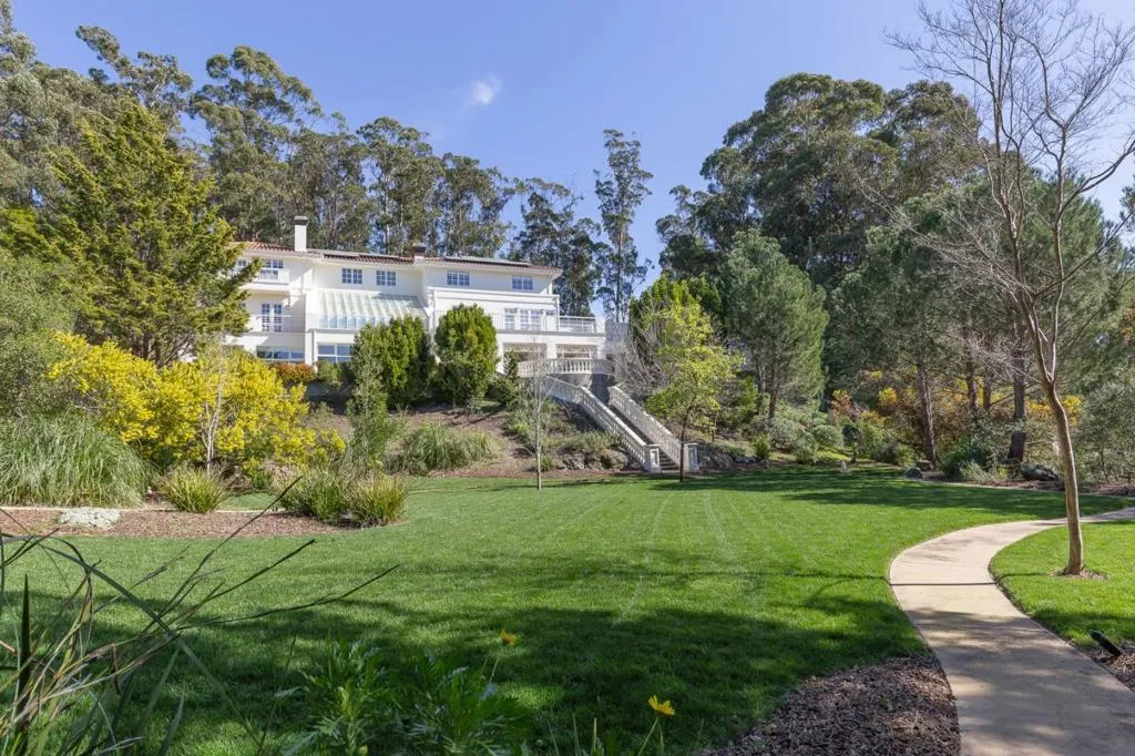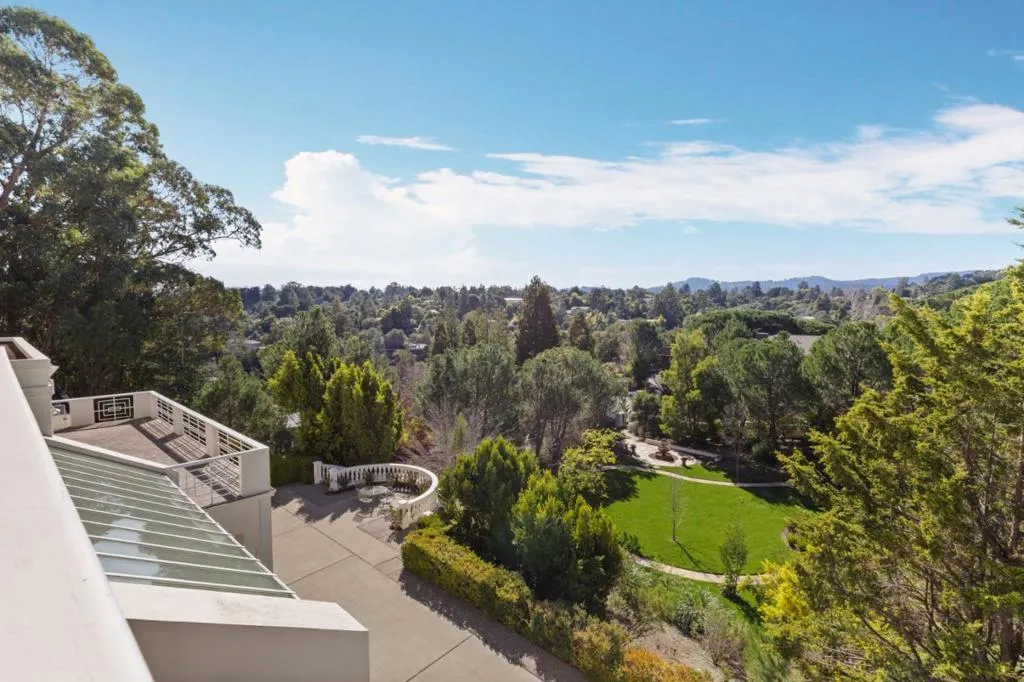 Perched on nearly two acres at the end of a quiet cul-de-sac in Hillsborough's sought-after Carolands neighborhood, this gated Mediterranean contemporary estate offers privacy, scale, and sweeping hill views. Remodeled in 1996 by a principal architect of Frank Lloyd Wright's company, the home showcases refined contemporary living with timeless architectural influence. Walls of glass, skylights, and French doors fill the interiors with natural light. A grand foyer with spiral staircase and chandelier sets the tone, opening to elegant living and dining rooms with fireplaces, hardwood floors, and view balconies. The showpiece is the expansive chef's kitchen, thoughtfully designed with COMMERCIAL-GRADE stainless steel appliances, custom cabinetry, and generous workspace. A striking breakfast bar with Wolf gas griddle anchors the space, while French doors open to a balcony, creating seamless indoor outdoor flow ideal for entertaining. The upper level features four en-suite bedrooms including a luxurious primary suite with fireplace, private balcony, dual walk-in closets, and spa-like bath. Lower level amenities include a wine cellar, bar, media area, indoor pool, and guest suite. Experience this exceptional estate in person and schedule your private tour today.