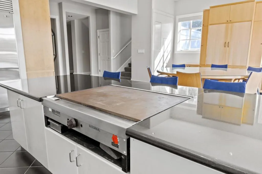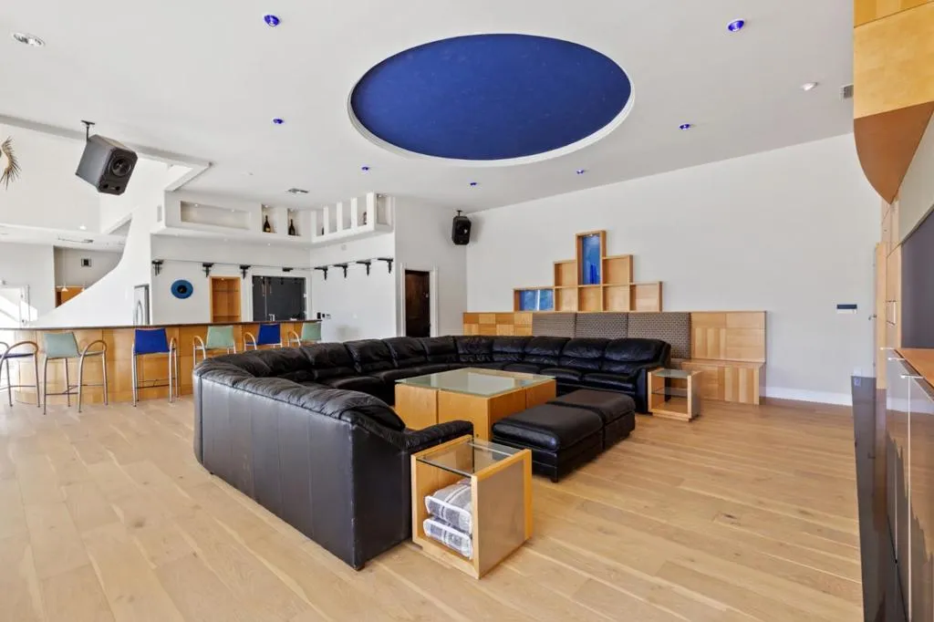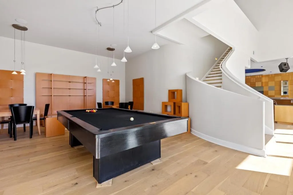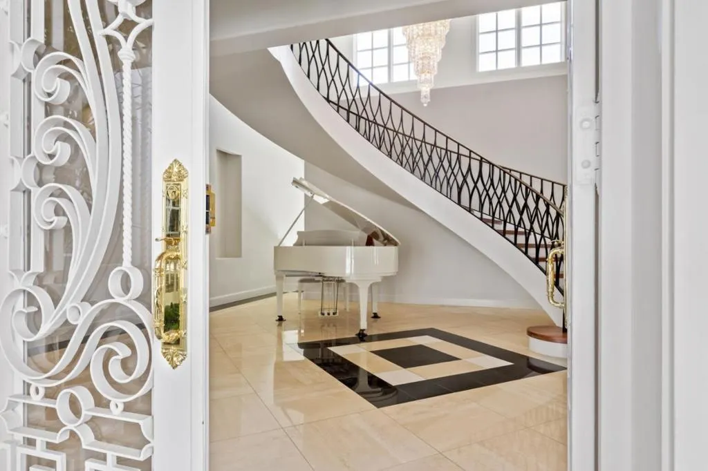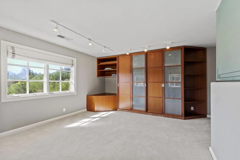Perched on nearly two acres at the end of a quiet cul-de-sac in Hillsborough's sought-after Carolands neighborhood, this gated Mediterranean contemporary estate offers privacy, scale, and sweeping hill views. Remodeled in 1996 by a principal architect of Frank Lloyd Wright's company, the home showcases refined contemporary living with timeless architectural influence. Walls of glass, skylights, and French doors fill the interiors with natural light. A grand foyer with spiral staircase and chandelier sets the tone, opening to elegant living and dining rooms with fireplaces, hardwood floors, and view balconies. The showpiece is the expansive chef's kitchen, thoughtfully designed with COMMERCIAL-GRADE stainless steel appliances, custom cabinetry, and generous workspace. A striking breakfast bar with Wolf gas griddle anchors the space, while French doors open to a balcony, creating seamless indoor outdoor flow ideal for entertaining. The upper level features four en-suite bedrooms including a luxurious primary suite with fireplace, private balcony, dual walk-in closets, and spa-like bath. Lower level amenities include a wine cellar, bar, media area, indoor pool, and guest suite. Experience this exceptional estate in person and schedule your private tour today.