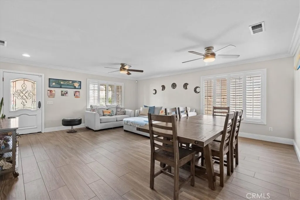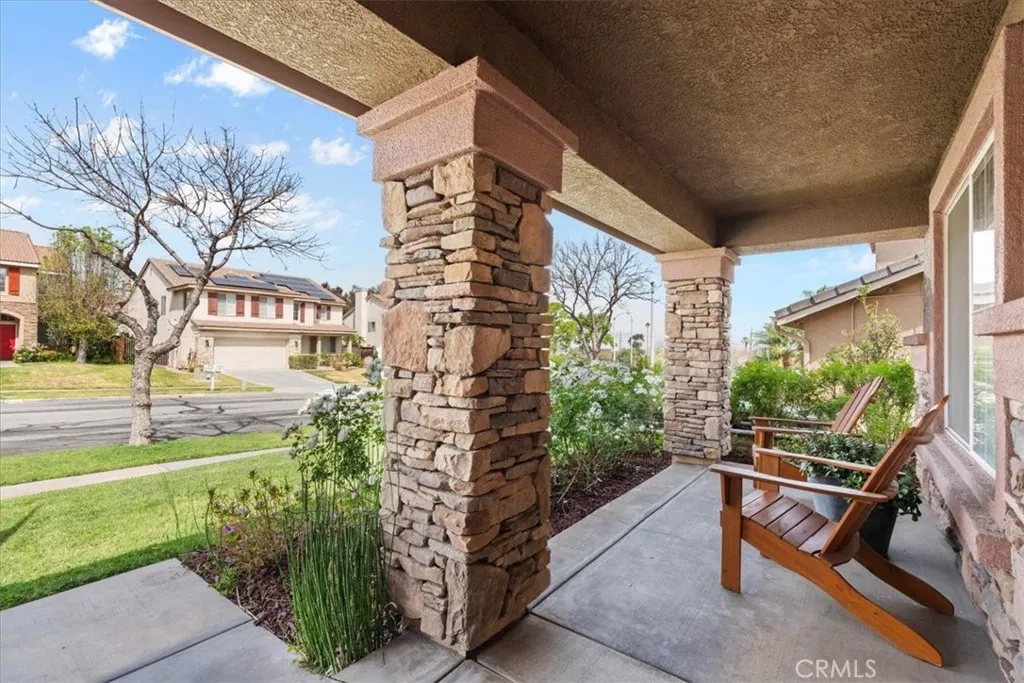 Beautifully upgraded two-story home with an incredible backyard featuring an in-ground pool, spa, and fire pit, perfect for entertaining. The main level offers a living room with a dining area, a family room with a coffered ceiling and a fireplace, and a half bath. The kitchen opens to the breakfast area and family room and features stainless steel appliances, including a double oven, a center island, and abundant cabinetry. There is also an indoor laundry room and direct access to the 2-car garage. Upstairs, the spacious primary suite features chair-rail molding, an en suite bathroom with dual vanities, a separate vanity area, a soaking tub, a separate shower, and a walk-in closet. The second level also features a loft, three additional bedrooms, and a hall bath with dual vanities. Additional interior highlights include upgraded flooring, ceiling fans, plantation shutters, recessed lighting, a PAID-OFF ELECTRIC SOLAR SYSTEM, and a whole-house/attic fan. Exterior features include a covered front porch, a covered patio, an automatic irrigation system, an expanded driveway, and more. Conveniently located near the 15 Freeway, shopping, and entertainment. NO HOA Dues and Low Taxes!