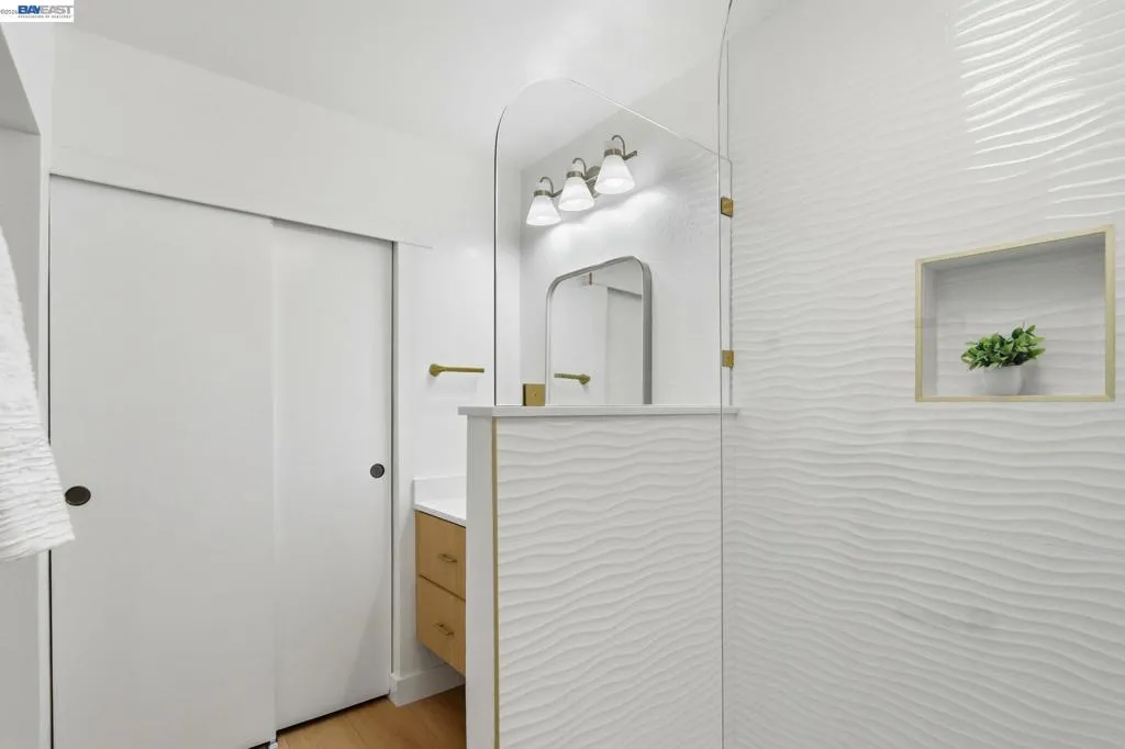 Location is everything! 40930 Rioja Ct. is tucked inside a quiet cul-de-sac in the heart of Fremont's Mission San Jose neighborhood. It offers you outstanding Mission Schools and a short walk to Central Park and Lake Elizabeth. It's close to BART, 880, 680 & 84. This light-filled home is wrapped around by roses and fruit trees. Both bathrooms were beautifully renovated in March with a modern style. The spacious primary ensuite includes a new bathroom enclosed by barn-house door. Custom design includes: floating vanities, mirrors with fog-defrost light, new shower, custom-glass-enclosure, satin-gold faucets/shower/towel accessories and matching light fixtures. The contemporary flare extends beyond the bathrooms. There are 13 New lights, 7 new doors, all new matt-black finish knobs and hinges. The kitchen has new faucets, hood, and cabinet door handles. The home owner's love for gardening shows throughout this adorable home. You will be greeted by blooming roses as you approach the house and feel instantaneously relaxed in the sunny backyard lined with fruit-bearing trees, including Apple, Orange, Tangerine, Yellow Peach, White Peach, Pomegranate, Lemon and Plums. The spacious 2-car garage has EV-charging.