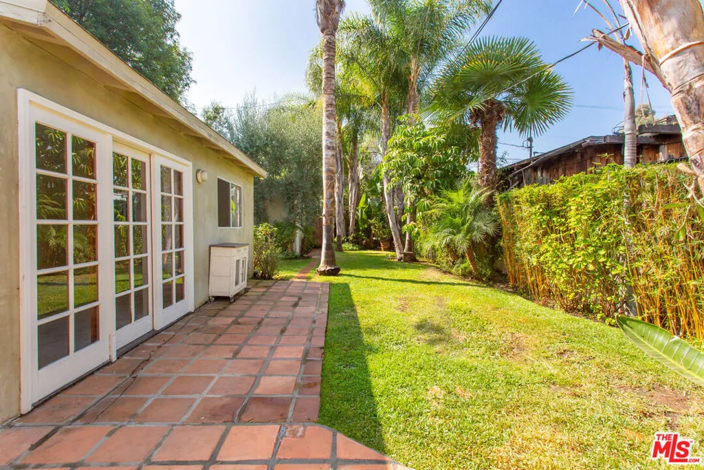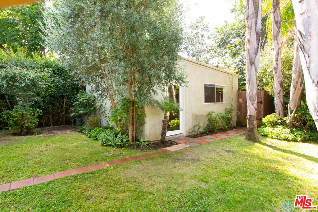 Beautifully updated and charming bungalow situated on a private, lushly landscaped lot with water permeable plants throughout. The main house offers two bedrooms and two bathrooms, featuring hardwood floors, abundant natural light, and an updated kitchen with granite countertops, stainless steel appliances, and a breakfast bar. The primary bedroom boasts French doors that open to an oasis-like backyard and patio, creating a seamless indoor-outdoor flow perfect for enjoying the California lifestyle. The finished garage has been thoughtfully converted into a studio complete with its own bathroom, offering flexible space for guests, a home office, or creative use. Ideally located within walking distance to award-winning Beethoven Street Elementary School and the Mar Vista Farmers Market, and just a short bike ride to the beach and Abbot Kinney, this home blends comfort, style, and convenience.