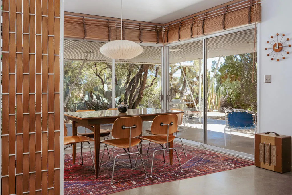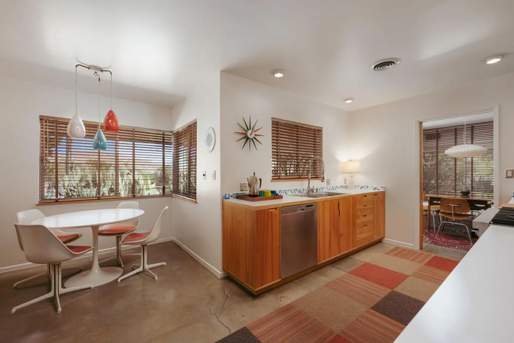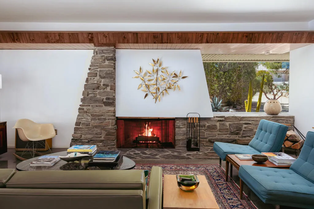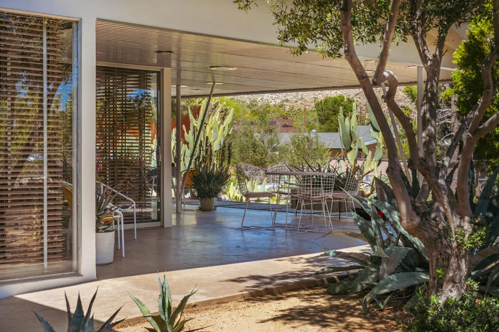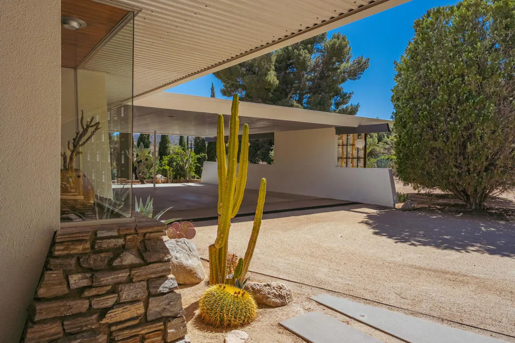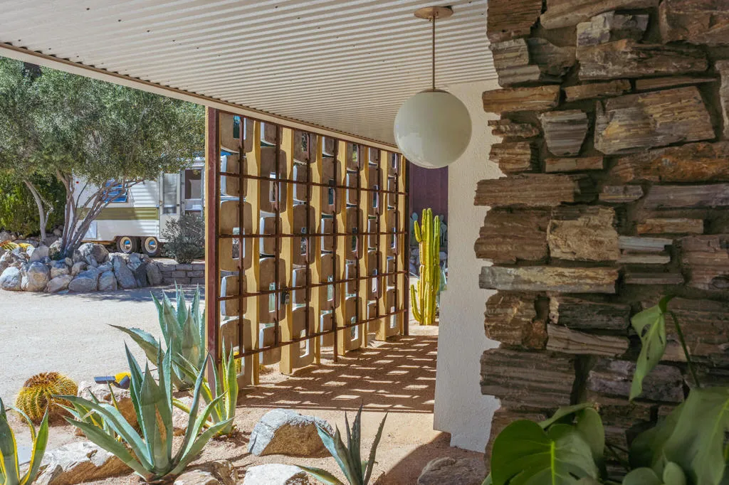Set within Yucca Valley's coveted Country Club enclave, this 1961 ranch is a private, design-led retreat, meticulously restored over 22 years by a master craftsman. The quality of execution is exceptional, with custom kitchen cabinetry, polished concrete floors throughout, multiple pocket doors, and a striking stone fireplace that brings warmth and sculptural presence to the living space.The home feels intentional, refined, and deeply livable throughout. An oversized patio with a 5+ foot metal-clad overhang extends the living experience outward, creating an effortless connection to the surrounding desert. Thoughtful improvements continue throughout, including an office, dedicated laundry with Etchwood cabinetry, a pegboard buffet in the breakfast area, beautifully finished baths, and curated landscaping designed for privacy, beauty, and calm.Originally the fourth home built in the neighborhood by noted high desert architect Arthur Edward Gerpheide, the property carries meaningful architectural provenance. Outside, two custom hand-poured concrete replicas of the original wood screens add another layer of craftsmanship and character, while mature desert plantings deepen the sense of seclusion. A fully restored vintage 1972 Kencraft travel trailer brings personality and flexible potential.Meticulously maintained and exceptionally executed, this is a rare offering where craftsmanship, history, and quiet design integrity come together in a truly special desert setting.