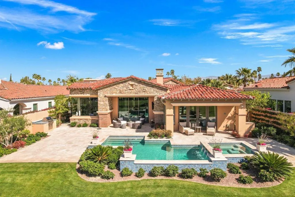 Please call for availability, flexible lease terms available. Seasonal rates apply. Escape to the desert and enjoy relaxed luxury living in this beautifully furnished Tuscan-style home, ideally set within the guard-gated Toscana Country Club. Perched on an elevated lot, the home offers stunning south-facing mountain and golf course views from the main living areas, bedrooms, and outdoor patio, creating the perfect backdrop for your stay.Designed for comfort and easy living, the home features four en-suite bedrooms, including a private detached casita, ideal for hosting family and guests. The spacious great room, formal dining area, and fully equipped chef's kitchen with Wolf appliances and an oversized island make it easy to entertain or simply unwind at home.The primary suite is a peaceful retreat with a sitting area, beautiful views, and direct access to the pool and patio. The spa-like bathroom includes dual vanities, a soaking tub, walk-in shower, and generous closet space.Seamless indoor-outdoor living is at the heart of the home, with large sliding glass doors opening to a resort-style patio. Spend your days enjoying the pool and spa, dining outdoors, or relaxing in the lounge area with unobstructed fairway views. A private interior courtyard offers an additional quiet space with a fireplace, perfect for morning coffee or evening relaxation.Located in one of the desert's premier communities, this home provides a private and serene setting while still being close to shopping, dining, and entertainment.Please note: Toscana Country Club amenities are not included with the lease.