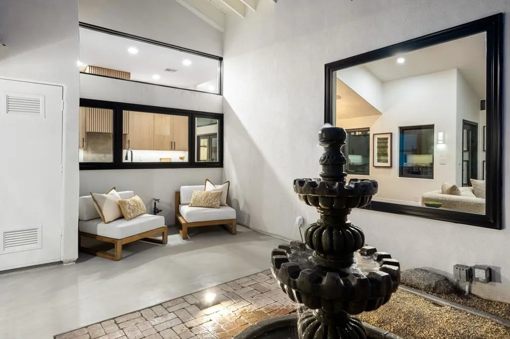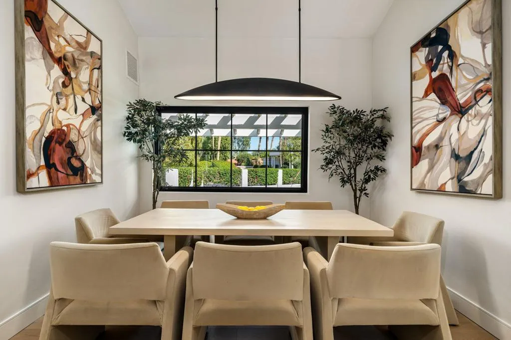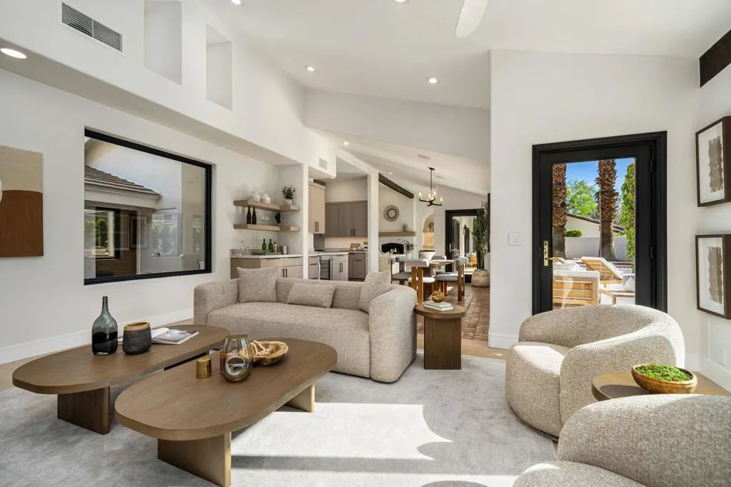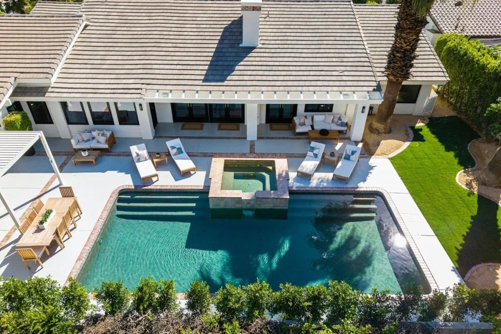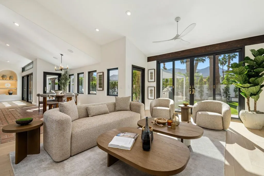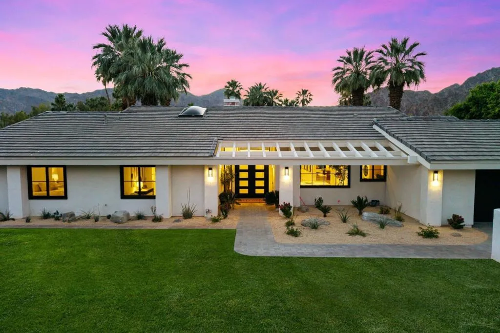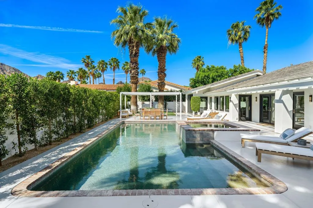 Completely reimagined and renovated to the highest standard, this exceptional residence embodies refined desert living and effortless sophistication. Every detail has been thoughtfully curated, showcasing top-tier finishes and a cohesive contemporary design throughout.The home offers three spacious en suite bedrooms and three-and-a-half baths, anchored by a stunning chef's kitchen designed for both everyday living and elevated entertaining. Thermador appliances, bespoke cabinetry, and designer surfaces flow seamlessly into expansive open-concept living and dining spaces--creating a sense of scale, light, and connection.Wide-plank white oak engineered hardwood floors run throughout, complementing the home's warm, modern aesthetic. Each bathroom has been exquisitely redesigned with high-end fixtures, elegant tilework, and spa-inspired finishes--offering private retreats of comfort and style.New windows and doors invite an abundance of natural light, while a new roof and fully modernized systems--including integrated audio, whole-home Wi-Fi, updated HVAC, and tankless water heating--provide peace of mind with true turnkey ease.Outdoor living is equally compelling. Set on an oversized lot, the property captures panoramic mountain views and delivers a resort-caliber experience with a beautifully designed pool and spa, expansive entertaining areas, and a fully equipped outdoor kitchen anchored by a premium Hestan grill.Ideally positioned within the gates of La Quinta Country Club, this residence presents a rare opportunity to enjoy resort living in one of the desert's most sought-after enclaves--just moments from La Quinta Resort & Club, world-class tennis, premier polo at Empire Polo Club and Eldorado Polo Club, and the dining and lifestyle offerings of Old Town La Quinta.