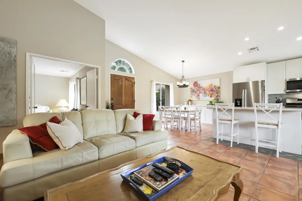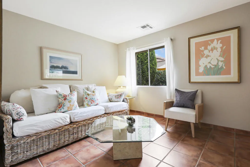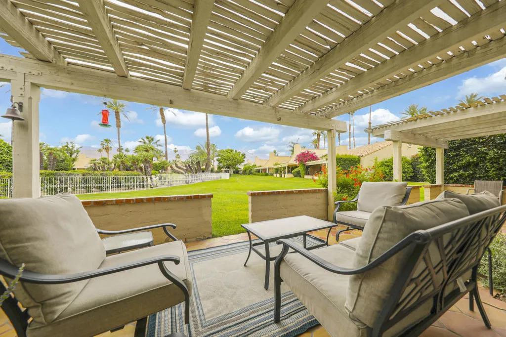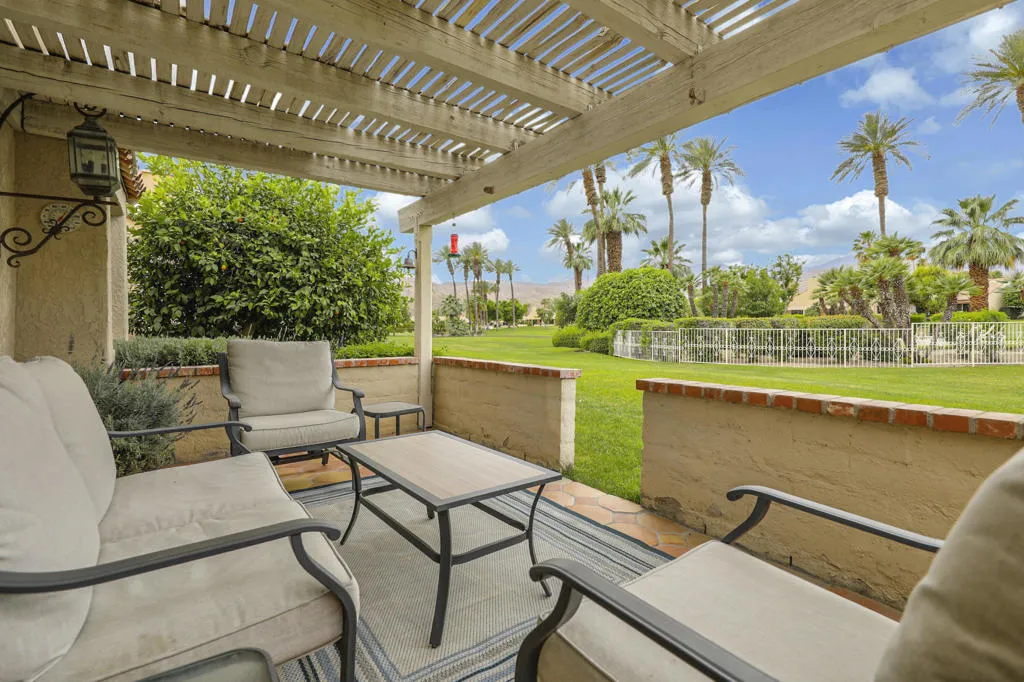 Welcome to this charming, fully detached Spanish-style hacienda, offering breathtaking mountain and pool views. This exceptional property is offered turnkey furnished, making it move-in ready or ideal as a second home or investment.A spacious tiled front courtyard creates a warm and inviting entry, while the beautifully finished rear patio provides the perfect setting for outdoor relaxation and stunning sunset views.Inside, the updated kitchen features elegant quartz countertops, a center island, stainless steel appliances, and stylish cabinetry--perfect for both everyday living and entertaining. The open-concept great room showcases vaulted ceilings, a cozy fireplace, abundant natural light, and picturesque views that enhance the home's airy feel.Both bathrooms have been tastefully renovated, and the versatile den/third bedroom includes built-in office space--ideal for working from home. A thoughtfully designed split-bedroom layout ensures privacy, with secondary bedrooms well separated.Additional highlights include fully paid solar and a two-car attached garage.Located in the sought-after ''Casitas'' at Rio Del Sol, residents enjoy exclusive access to a private lake, two pools and spas, and beautifully maintained green spaces. Additional community amenities include a larger pool and spa, tennis courts, and a dog park.Experience the perfect blend of tranquility, comfort, and vibrant community living--welcome home to Rio Del Sol!