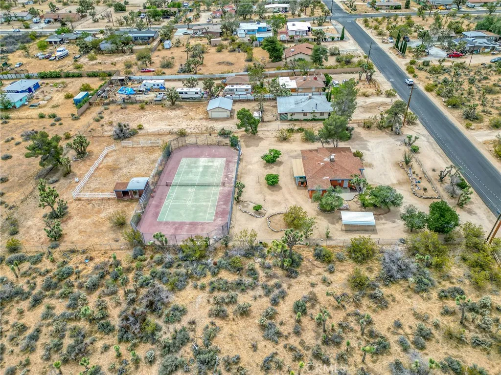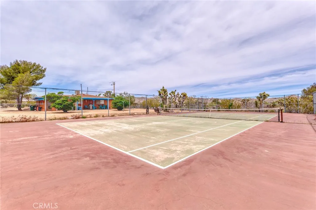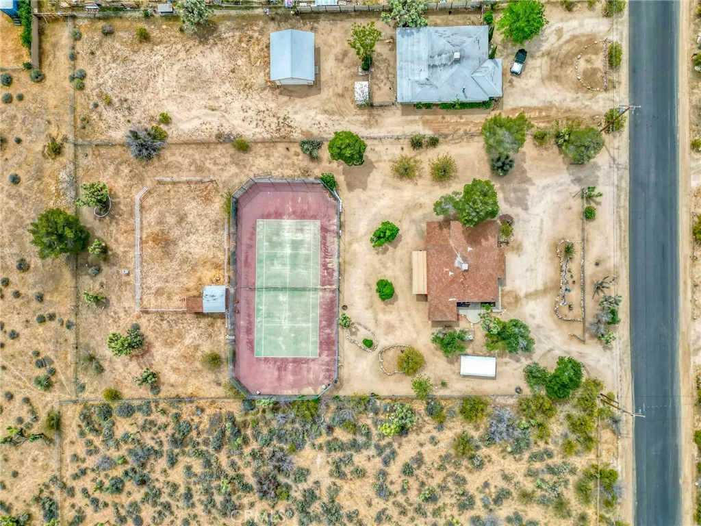 Charming Southwest style retreat set on over an acre of beautifully landscaped desert terrain, offering a rare combination of privacy, versatility, and lifestyle. Surrounded by mature trees and natural desert beauty, this fully fenced property stands out with its full size tennis court. easily convertible to a pickleball setup. creating incredible potential for personal enjoyment or a highly desirable short term rental feature. Equestrian enthusiasts will appreciate the covered horse riding arena, making this property ideal for those seeking space for animals, recreation, or a unique income producing opportunity. Inside, the home is warm and inviting with a spacious layout featuring two bedrooms plus bonus room areas perfect for an office, guest space, or creative studio. Wood style flooring runs throughout, complemented by a charming country kitchen with natural gas appliances. Conveniently located in town with easy access to shopping and dining, yet offering the feel of a private desert escape, this property delivers the best of both worlds. A truly special opportunity with endless potential for lifestyle living or investment.