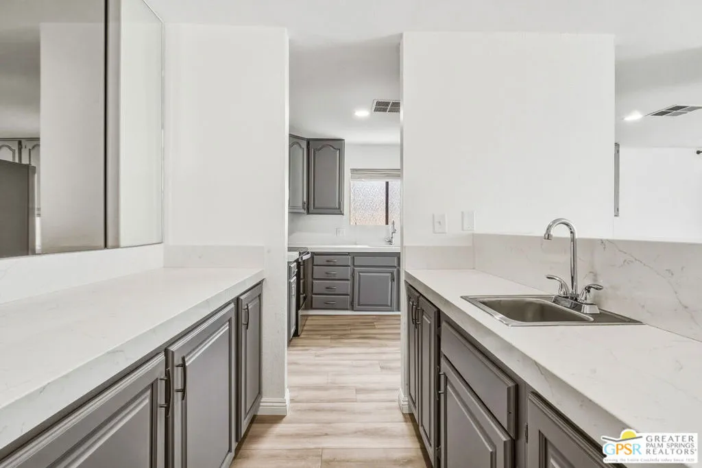 Welcome to 52925 Avenida Vallejo, perfectly located in the desirable mid-Cove area. This charming home offers a seamless blend of comfort and modern style, featuring durable vinyl flooring throughout and elegant quartz countertops in the kitchen, wet bar, and bathrooms. The updated kitchen is equipped with stainless steel appliances, providing both functionality and a sleek, contemporary feel. The bathrooms have been thoughtfully refreshed, adding to the home's move-in-ready appeal. Ideally situated just minutes from Old Town La Quinta, you'll enjoy easy access to local dining, shopping, the popular farmers market, and a variety of scenic hiking trails, perfect for embracing the vibrant desert lifestyle.