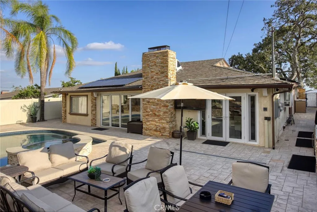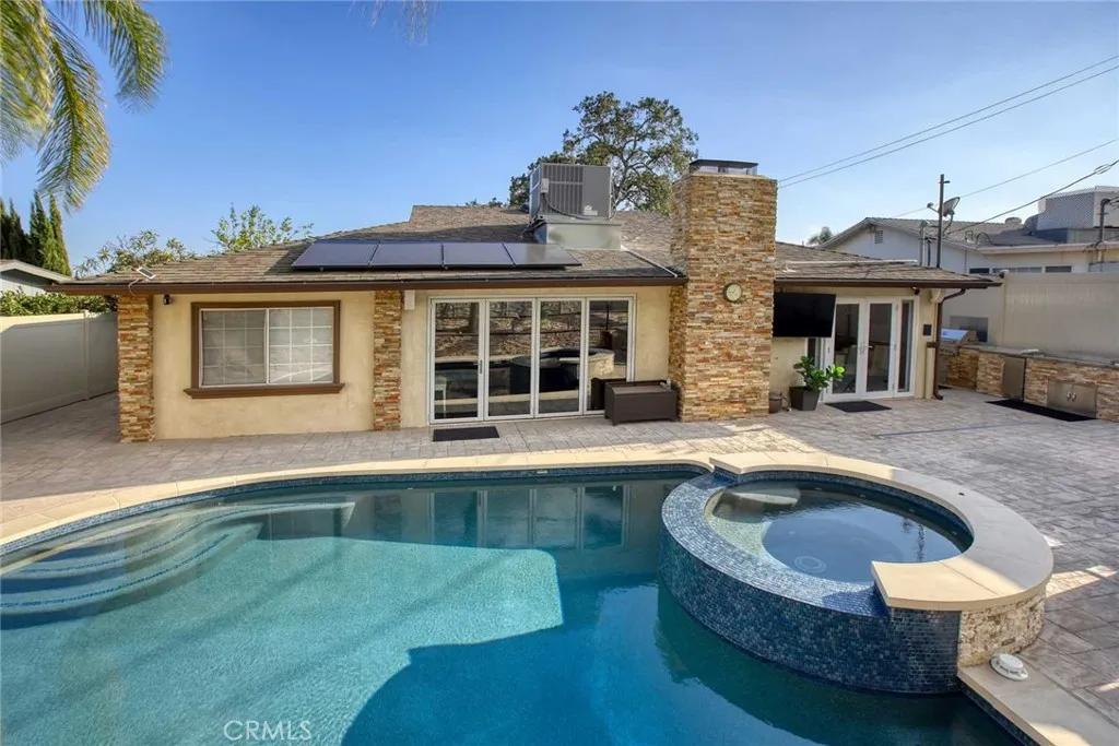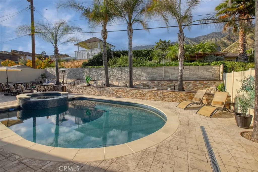 Welcome to this beautifully updated and fully furnished home in the highly sought-after Upper Hastings Ranch neighborhood of Pasadena. Offering 3 bedrooms, 3 bathrooms, and approximately 2,198 square feet of living space on a 7,201 square foot lot, this turnkey residence combines comfort, style, and convenience. Step inside to find soaring soffited ceilings and elegant porcelain flooring throughout, creating a bright and sophisticated atmosphere. The thoughtfully designed open floor plan features a spacious living area, a large family kitchen with breakfast bar island, a separate formal dining room, and a stylish dry bar—perfect for both everyday living and entertaining. Custom built-ins are found throughout the home, adding both functionality and charm. The primary suite serves as a private retreat, complete with a spa-inspired bathroom featuring a jetted soaking tub and refined finishes. Adding to the home’s versatility is a bonus/game room located at the rear of the property—ideal as a media room, home office, gym, or additional entertainment space. The backyard has been fully renovated into a true outdoor oasis, showcasing a brand-new pool and spa, BBQ area, updated hardscape, and lush landscaping—perfect for relaxing or hosting guests.
