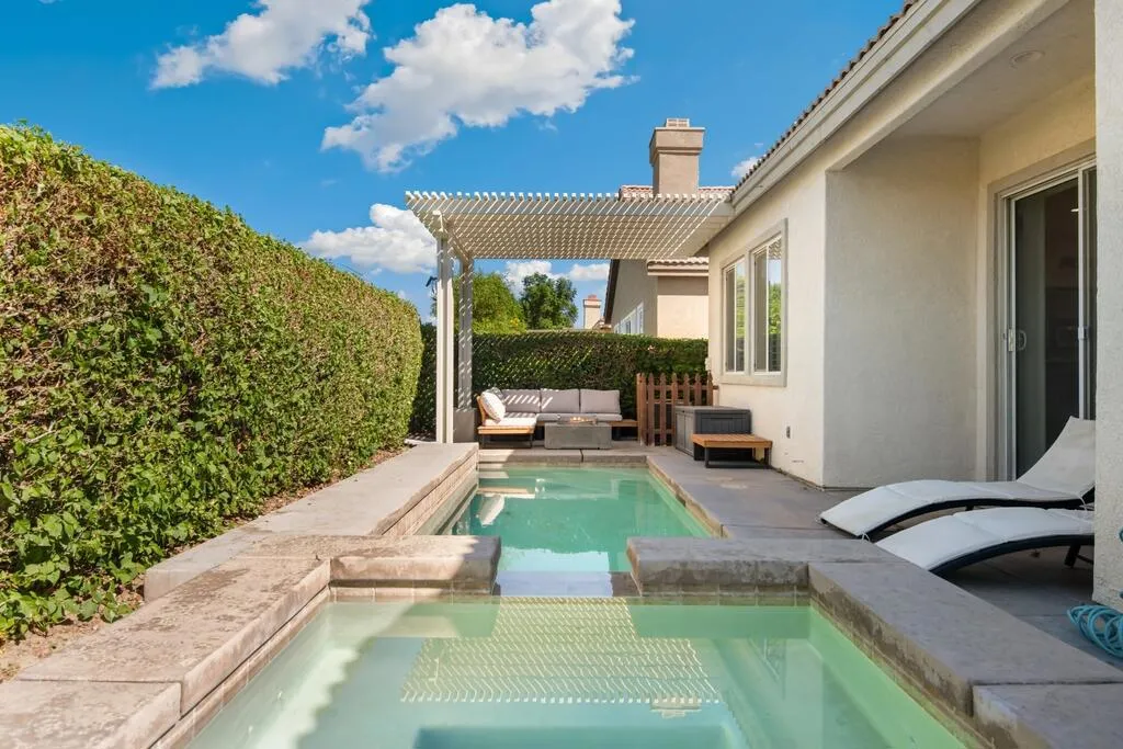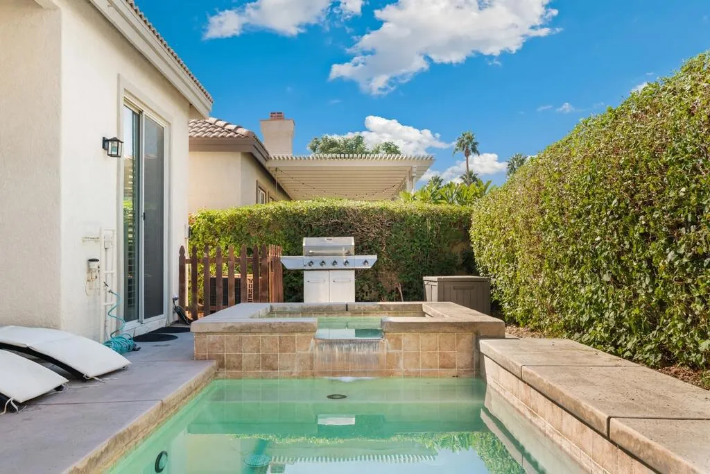 Exceptional short-term rental opportunity in Indian Palms Country Club, where refined desert living meets resort-style luxury in this beautifully upgraded pool home. Designed in quintessential Palm Springs style, this residence blends comfort, style, and functionality--ideal as a private retreat or income-producing Airbnb. The bright, open interior features slab granite countertops in the kitchen and baths, stainless steel appliances, plantation shutters, and ceiling fans throughout. A built-in surround sound system enhances the living experience, creating an inviting space for both relaxing and entertaining. Step outside to your private backyard oasis, where a sparkling pool and spa are framed by lush, mature bougainvillea--offering a serene, picturesque setting with exceptional privacy. Located within the guard-gated Indian Palms Country Club, residents and guests enjoy access to a 27-hole golf course, tennis, pickleball, bocce ball, fitness center, and multiple community pools. Just a short walk to the Empire Polo Club, this home is perfectly positioned for Coachella and Stagecoach, with close proximity to the Indian Wells Tennis Garden and PGA West. Dining, shopping, and entertainment are all minutes away. A rare opportunity to own a high-demand short-term rental in one of the desert's most sought-after resort communities.