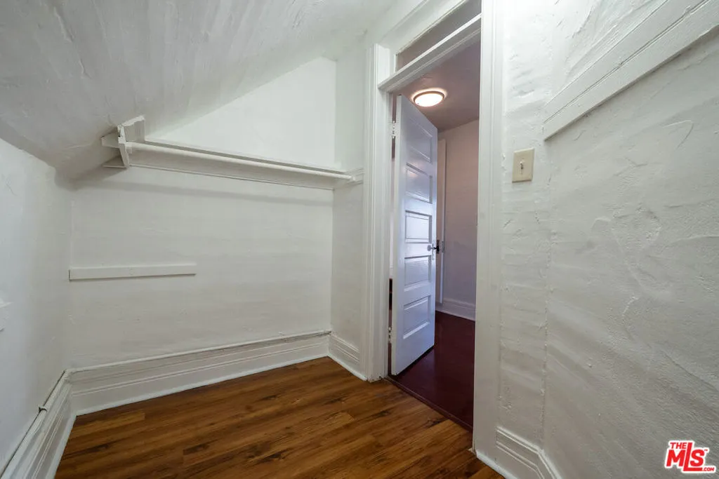 Perched on the top floor of a beautifully restored 19th-century Queen Anne Victorian, this rare and character-filled residence offers a unique blend of historic architecture, privacy, and flexible living space. Accessed through a private gated entrance, the home welcomes you with an exclusive stairway leading to a versatile first bonus room ideal as a home office, studio, or creative workspace. A second private stairwell leads to the main living level, creating a sense of separation and quiet from the rest of the property. Inside, the layout is thoughtfully designed with two spacious bedrooms positioned on opposite ends, offering enhanced privacyperfect for shared living or guests. Throughout the home, you'll find generous storage, including multiple hallway and bathroom closets, a rare feature in properties of this era. One of the standout highlights is the turret sitting rooma signature Victorian architectural detail. This intimate, light-filled nook creates the perfect space for reading, relaxing, or a cozy secondary lounge. The kitchen is well-proportioned, with room for a small dining setup, and features a brand-new stove, blending modern convenience with the home's historic charm. Garage parking available for $150 additional. Set within a designated historic landmark under the Mills Act, the property showcases original design elements, large picture windows, whimsical balconies, and classic Victorian detailing, all carefully preserved while offering everyday functionality. Located just blocks from the energy of Downtown Los Angeles, you're within walking distance to everything from beloved local eateries to LA Live and top-tier dining.