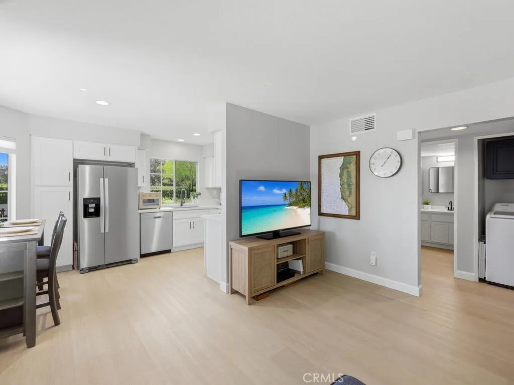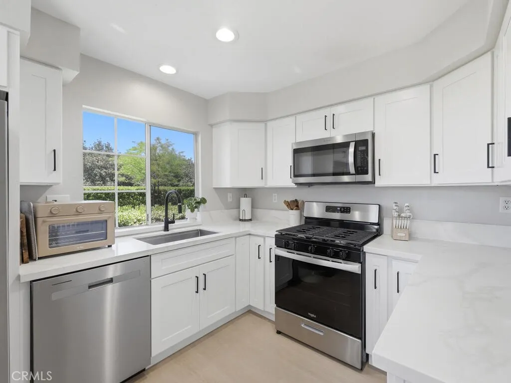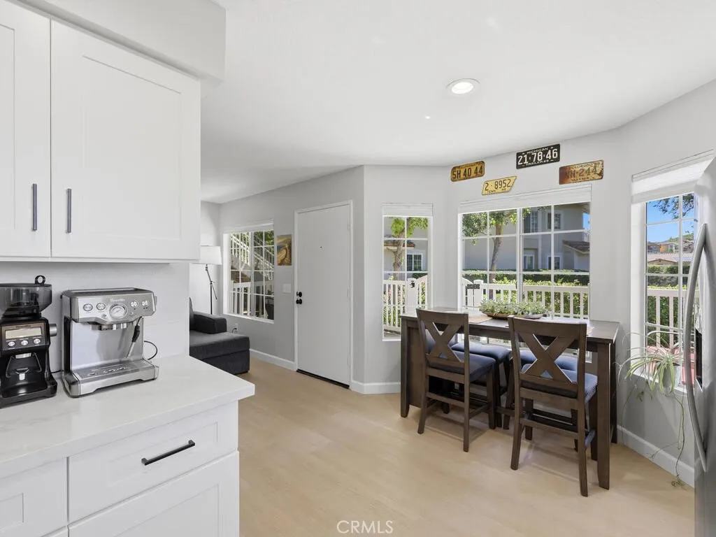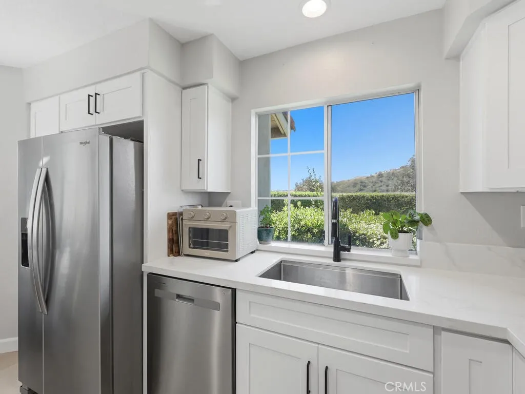 One of the best locations in the complex! This first level home has incredible views of the surrounding hills and overlooking an expansive greenbelt. Enjoy majestic sunsets from most rooms and your private patio. The interior has been updated including luxury vinyl flooring and neutral paint. The remodeled kitchen features white shaker cabinets, quartz counter tops, stainless steel appliances and a pantry. The primary bedroom is spacious with a large walk-in closet. Inside laundry, recessed lighting a 1-car, detached garage plus an assigned parking spot along with guest parking and plenty of street parking. This end unit has an open floor plan with plenty of natural light. The Villas at Hidden Ridge is a highly desired, gated community with community pool, spa and a gym. Short drive to Irvine Spectrum, local beaches and great shopping and dining. Excellent schools.