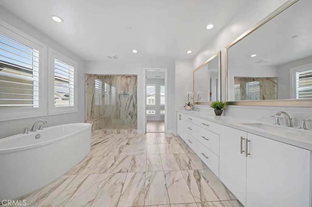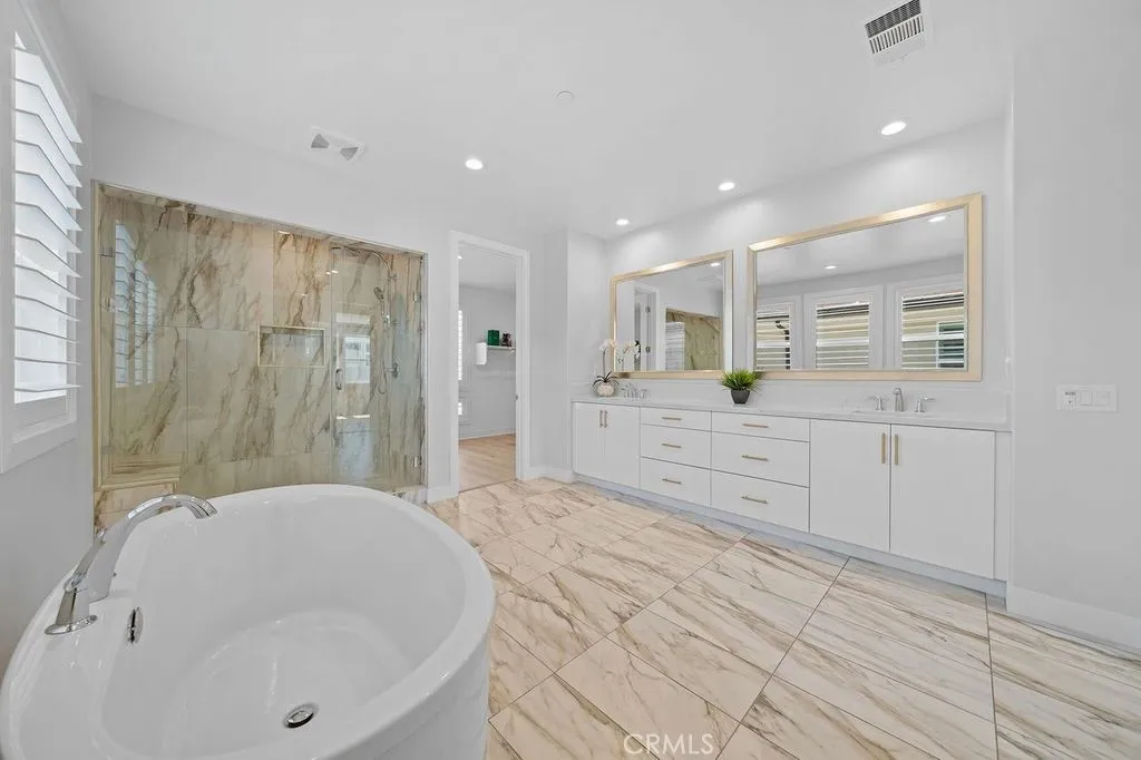 Luxury home by high-end developer, Toll Brothers, designed around an open concept 3,500+ sq-ft floor plan located in the upscale Meadows Community of Lake Forest. This is a rare find Modern Style Home from the front yard landscaping to the highly upgraded and many appointed new home interior features, to the magnificent uniquely designed 16 ft backyard water fountain, you will fall in love with this home! This house has 5 bedrooms, 5.5 bathrooms . The first floor has two rooms; one could be a perfect home office and a second one for guests with a private bathroom. Gourmet kitchen complete with luxurious upgraded cabinets across two full kitchen walls. Brand new stainless steel appliances (including double refrigerator, 6 burner stove, double ovens and dishwasher) with oversized large center Island with a deep sink and filtered instant hot and cold water. Sectional sliding doors across the full with the house open to the backyard and California Room. The second floor has 4 bedrooms with a sizable loft separating the Master Suite. The Master Suite encompasses almost half the upstairs floor space. The Meadows Community offers an Amazing Lifestyle surrounded by hiking and bicycle trails, and resort style amenities with high-end clubhouse, multiple swimming pools, Jacuzzi, a sports park, 6 local parks . With a private recreation center, lounge areas, several parks with picnic areas, a playground, BBQ, volleyball, basketball, soccer, dog park, and more. The Meadows community is located within the highly regarded Saddleback Valley Unified School District and is close to several prestigious private schools. Furthermore, it is conveniently located with nearby amenities such as a 24-hour fitness center, Home Depot, retail, shopping and dining centers. The Foothill Shopping Center is 5 minutes away, the well-known Irvine Spectrum Plaza is 10 minutes close by, with easy access to multiple freeways and toll roads, and the John Wayne Airport 20 minutes away. This is A Must See Home! You Won’t Be Disappointed.