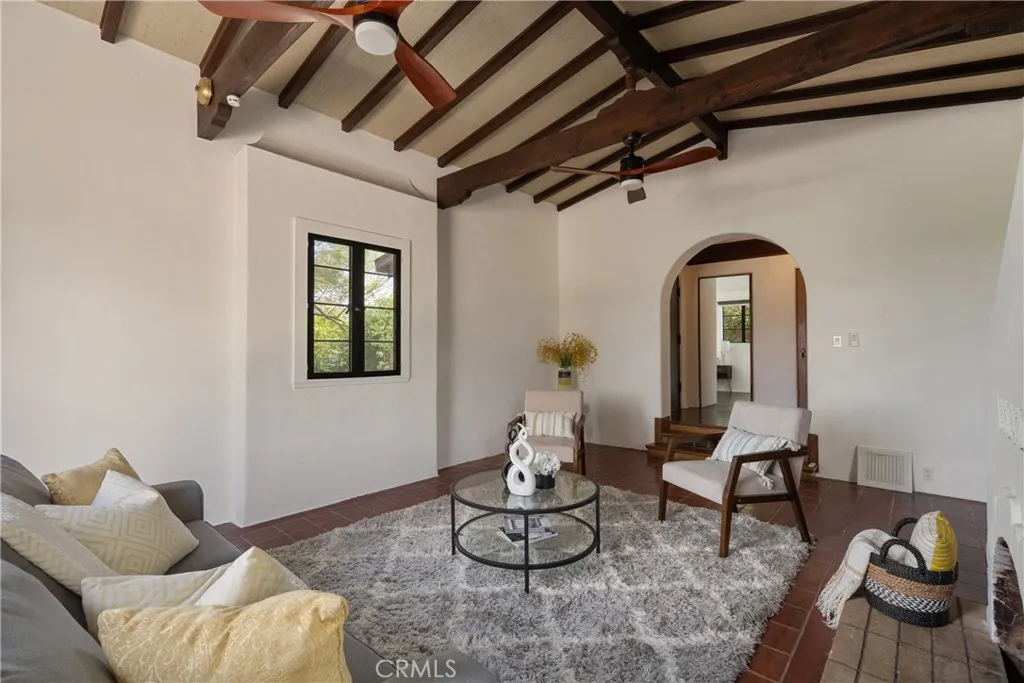 Welcome to this exquisite Adobe Spanish-style home nestled in the serene neighborhood of Rancho Cucamonga. Situated on a prominent historical corner lot, offering two homes on one lot. Known for its character and presence in the neighborhood, this home blends timeless design and a wealth of amenities and charm. The curb appeal is a masterpiece of artistic design, featuring lush greenery, a roundabout driveway, and tiled steps leading to a secure gated front entryway. Beyond the Spanish style front door lies a welcoming wooden floor entryway that guides you into the living room. The living room is a spacious sanctuary with cathedral ceilings, a white clay fireplace, and a generously sized front window that floods the room with natural light, creating an inviting ambiance. As you traverse the wooden hallway, you'll discover a total of 4 bedrooms and 3 beautifully appointed bathrooms, with 2 of them having undergone complete remodeling. Moving from the hallway, you'll be captivated by the formal dining area, also graced with lofty cathedral ceilings. From here, you'll seamlessly flow into the remodeled kitchen, adorned with white cabinetry, modern fixtures, newly installed laminate flooring, a stainless steel oven & range, and windows that can be opened to welcome in the refreshing natural breeze. Adjacent to the kitchen, you'll find a private laundry room with convenient storage cabinets, and an additional bathroom. The best part awaits as you step into the backyard, a true entertainer's dream. This outdoor oasis boasts a covered patio space with elegant tiled flooring, outdoor lighting to set the perfect mood, an inviting outdoor fireplace to gather around, and lush bamboo foliage creating a private sanctuary. Tucked away beyond the backyard is a newly built ADU, offering a separate, private living space. Inside, the ADU features a bright open layout with a spacious living area and a full kitchen complete with dark wood cabinetry, a center island, and stainless steel appliances. The ADU includes 2 bedrooms and 2 bathrooms, with a primary suite with its own bathroom and sliding glass doors that open to the backyard, creating easy indoor-outdoor access. A dedicated closet space allows for a stackable washer and dryer, adding convenience. Located near the 10 and 210 freeways, with access to shopping, dining, and everyday essentials. A unique property offering space, privacy, and flexible living options in one of Rancho Cucamonga’s established neighborhoods.