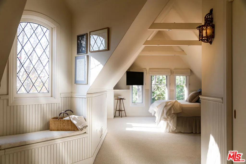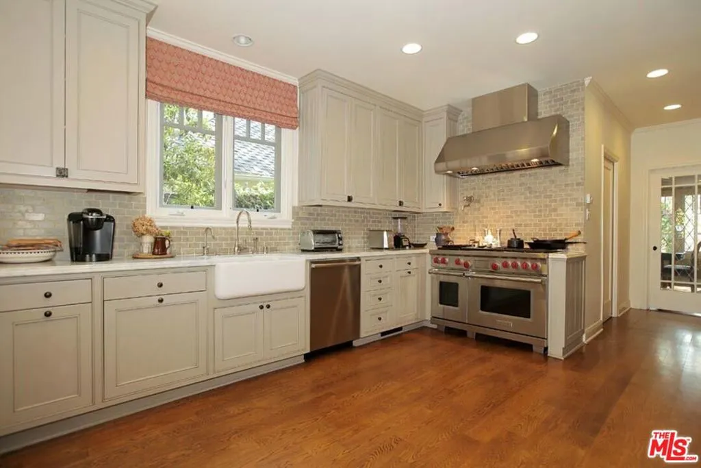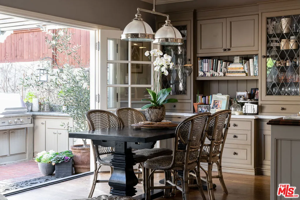 Available for the months of July and August, this classic 1925 Country English home sits on a quiet street, North of Montana in Santa Monica. The home and grounds have been luxuriously restored and updated throughout. It's an extraordinary indoor/outdoor entertaining house with a fully equipped gourmet kitchen with large adjacent family room, both opening to the backyard. The first floor features two private office spaces. There are four bedrooms upstairs and one bedroom suite downstairs. The primary suite includes sunny window seats, indulgent primary bath and large walk-in closet. A spacious and private backyard includes a blue tiled pool, hot tub, mature fruit trees and English garden house.