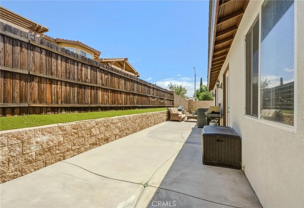 Wonderful single-level 4-bedroom, 3-bath home located on a quiet cul-de-sac. This spacious home features an open floor plan with a large kitchen offering generous counter space, granite countertops, and an oversized center island with additional seating—perfect for everyday living and entertaining. Enjoy the benefit of paid-off solar, providing significant energy savings and added value. The home offers a grand living room with a fireplace, creating a warm and inviting space. The primary suite includes a private retreat area with French doors leading to a patio. The en-suite bathroom features a walk-in closet, dual sinks, a soaking tub, and a separate shower. Additional highlights include an indoor laundry room, a flexible office space with a closet, recessed lighting, ceiling fans, tankless water heater, water softener, and a garage vacuum system. The exterior has high-end paint and upgraded doors. The low-maintenance backyard is fully paved with a separate side yard, ideal for pets. The front yard is cleanly landscaped with mature trees. Conveniently located near schools, including walking distance to Wildomar Elementary, this well-maintained and spacious home offers a great opportunity for buyers to make it their own.