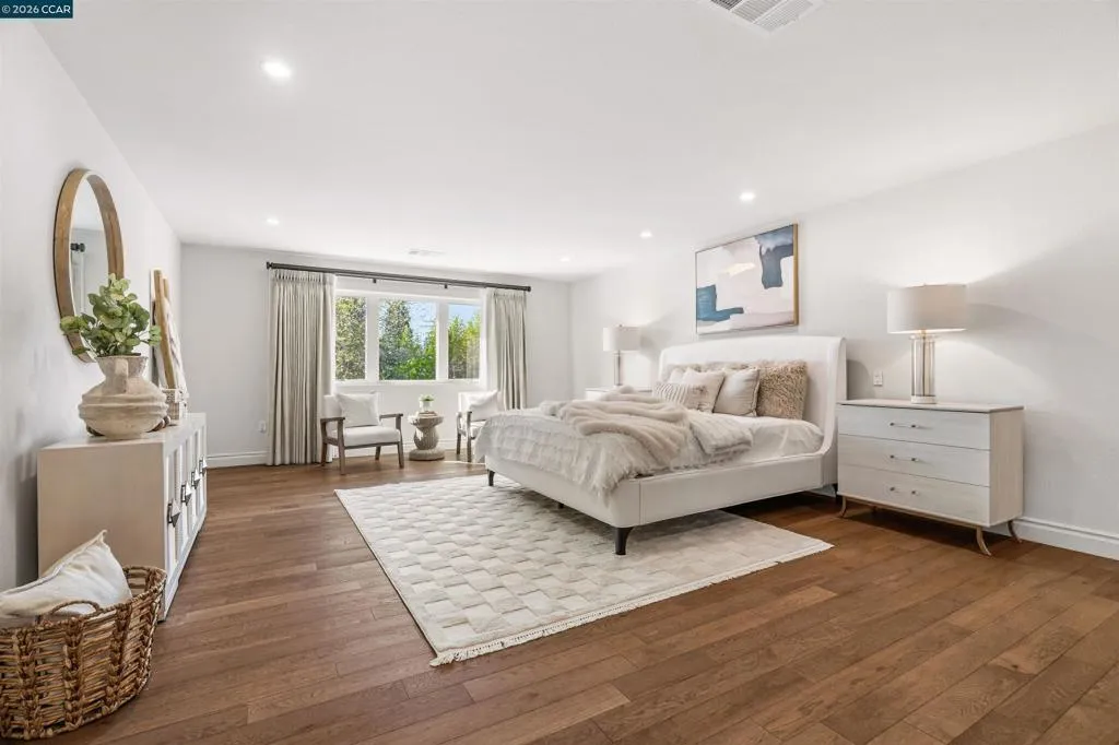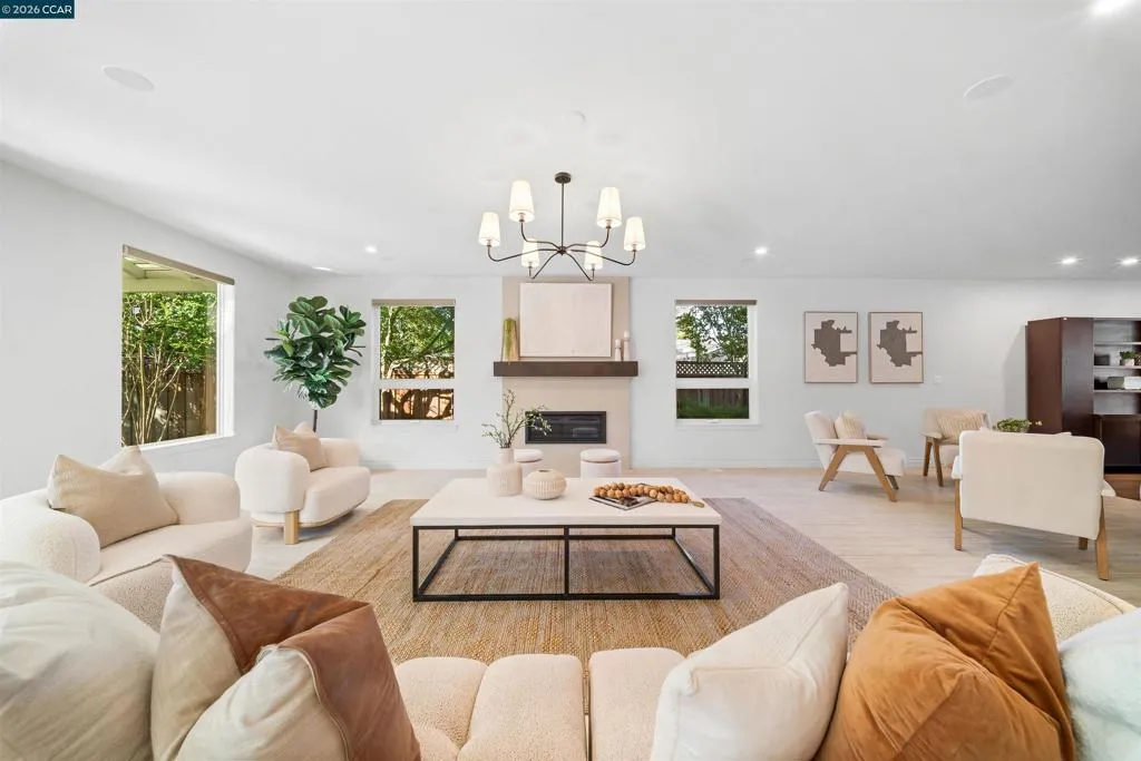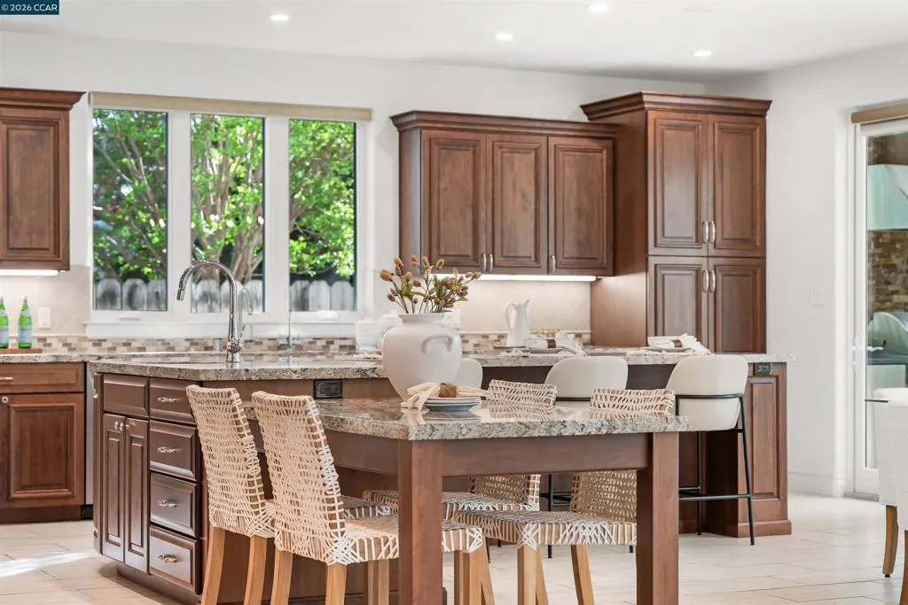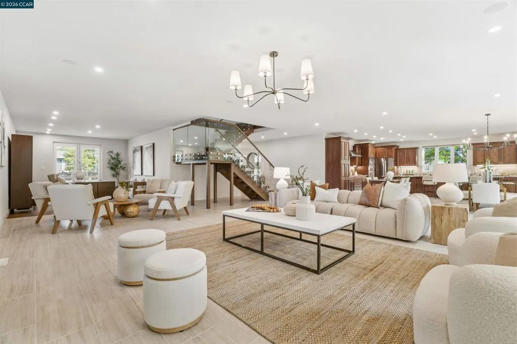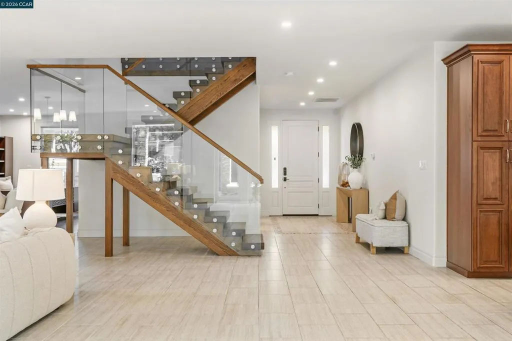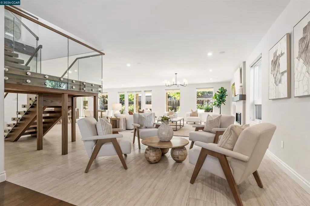 This extensively rebuilt 2016 home offers over 4,000 sq ft of modern living in a setting where homes of this scale are seldom available. Thoughtfully designed with clean lines and quality finishes, the home blends contemporary style with everyday functionality. The main level is anchored by a stunning great room and a chef’s kitchen featuring granite countertops, an oversized island, stainless steel appliances, and a built in dining table. A striking floating staircase serves as a centerpiece, while a spacious laundry room and custom coat room add convenience. Upstairs, the primary suite offers a true retreat with a spa inspired bath and an attached flex space ideal for a gym, office, or lounge. Well designed secondary bedrooms include an en suite and a Jack and Jill configuration. Outdoor living is equally inviting with a covered patio, built in BBQ, and multiple yard areas. Owned solar enhances efficiency, all within close proximity to top rated San Ramon Valley schools, City Center, and commuter routes.