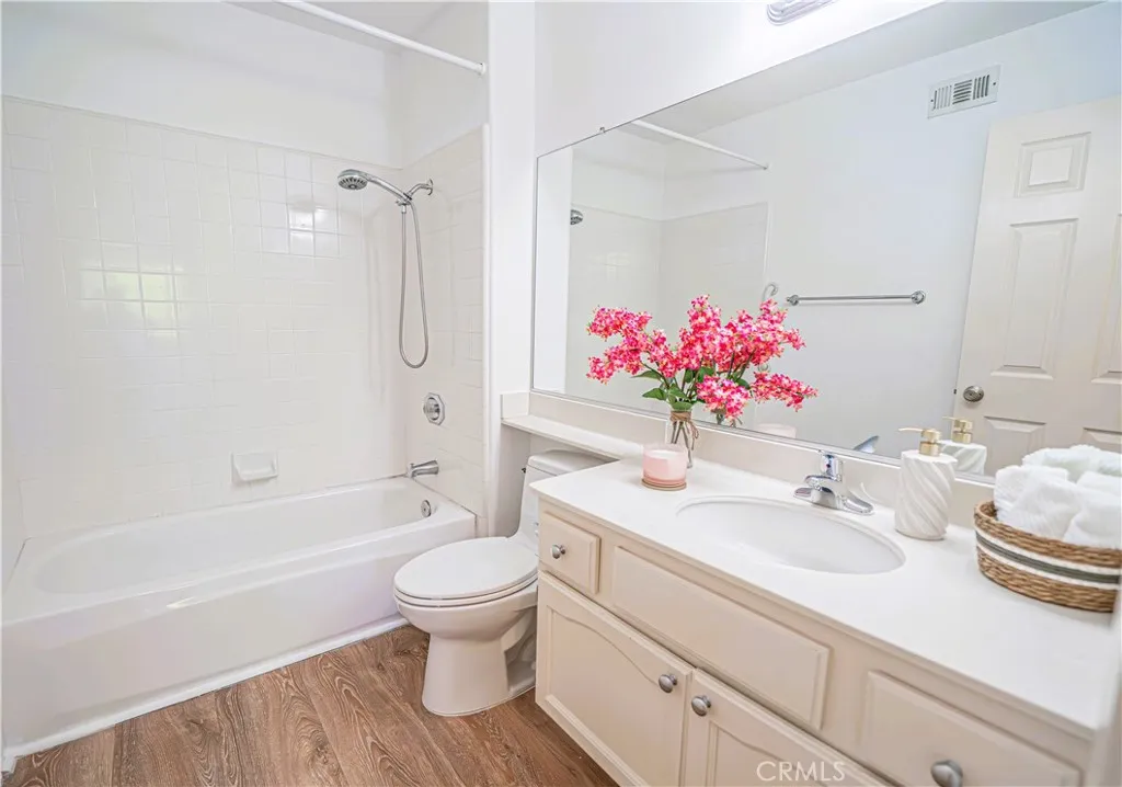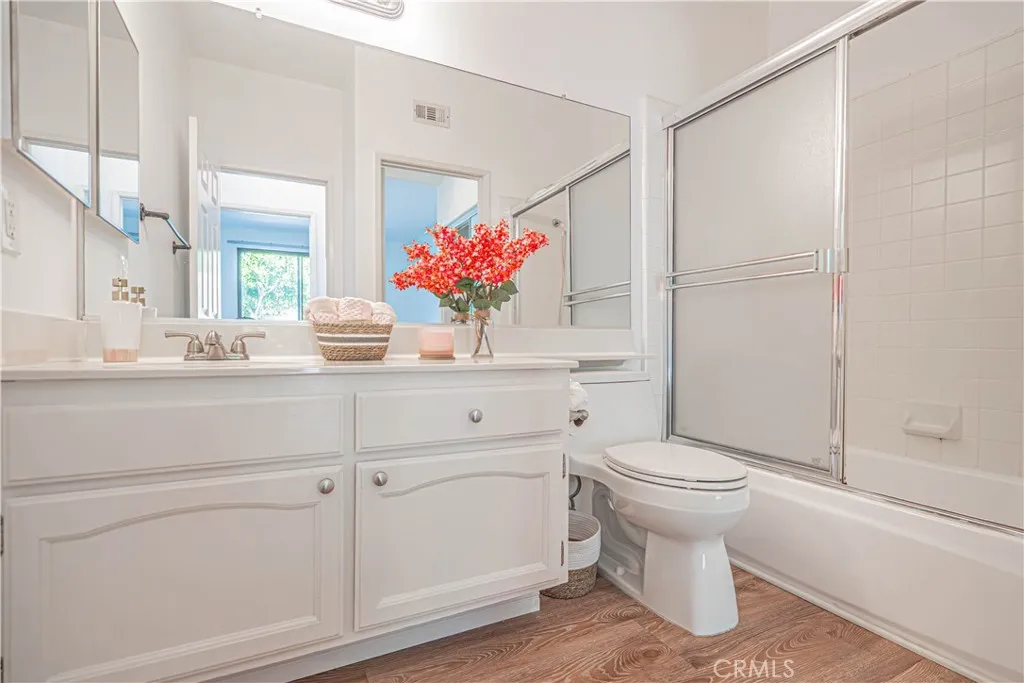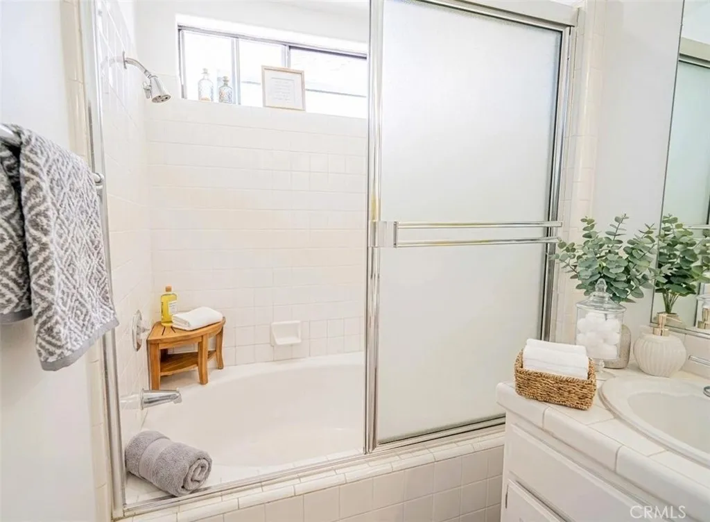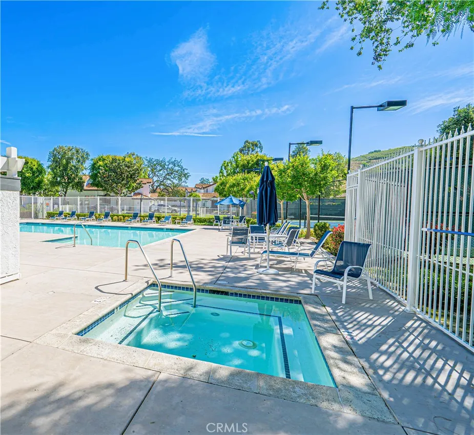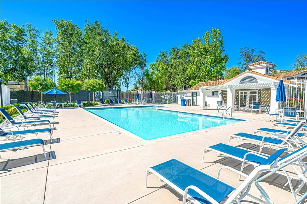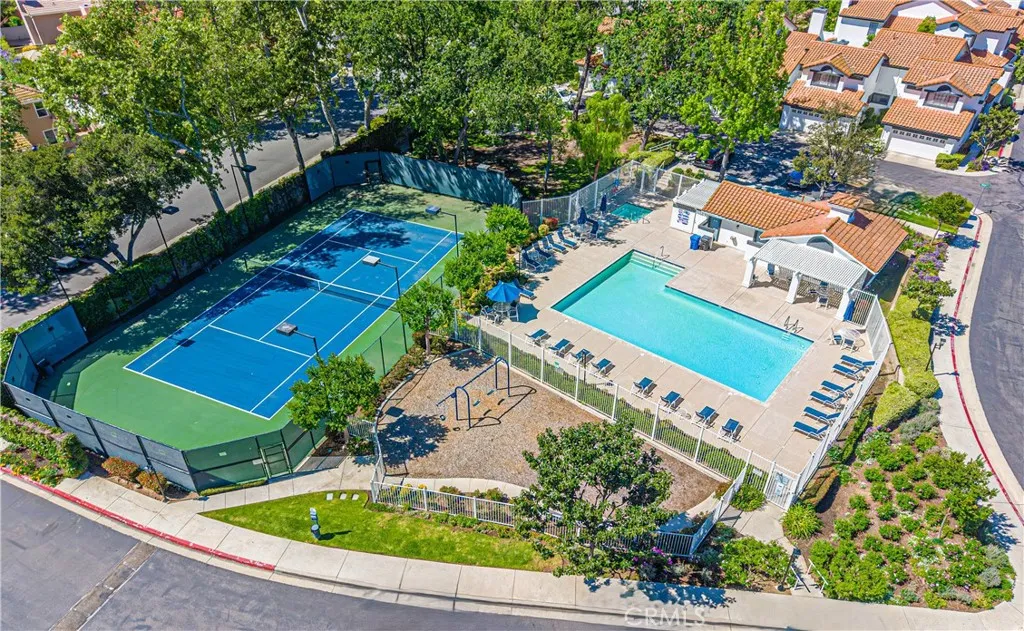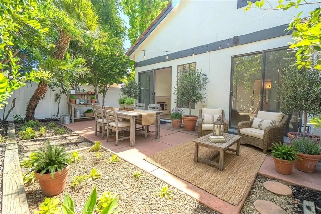 Beautiful Capri 3+3 home in a highly sought-after location with a bright, spacious, and open floorplan. The large living room features a fireplace and vaulted ceilings, complemented by a formal dining area and roomy eat-in kitchen. Recently refreshed with new interior paint, stunning wood-like flooring downstairs, and custom window treatments throughout, this move-in ready home offers three ensuite bedrooms. Downstairs includes a large bedroom with a full bath and access to large patio through sliding doors. The upstairs boasts a primary suite with vaulted ceilings, a walk-in closet with custom CA Closets, ensuite bath with dual vanity, and soaker tub with shower, plus another bedroom with its own ensuite bath. Enjoy direct access to the 2-car garage with electrical car charging plug, ample built-in storage and a workbench. Home offers a private indoor laundry room with washer and dryer hookups and an HVAC system. The lush private yard, accessible from the living room and downstairs bedroom, showcases mature trees, succulents, flowers, and plenty of space for barbecues and entertaining—nearly double the size of other yards in the community. This resort-style townhome is just steps from neighborhood pool, spa, tennis courts, playground, and greenbelt. Located in the prestigious Oak Park Unified School District, it’s close to top-rated schools, parks, hiking and biking trails, dining, shopping, and more. This home is truly special.