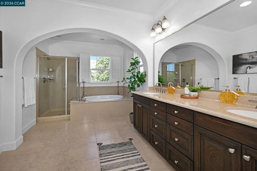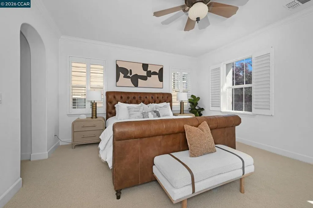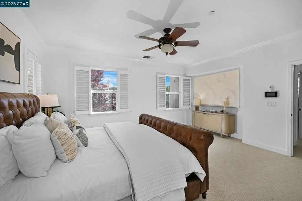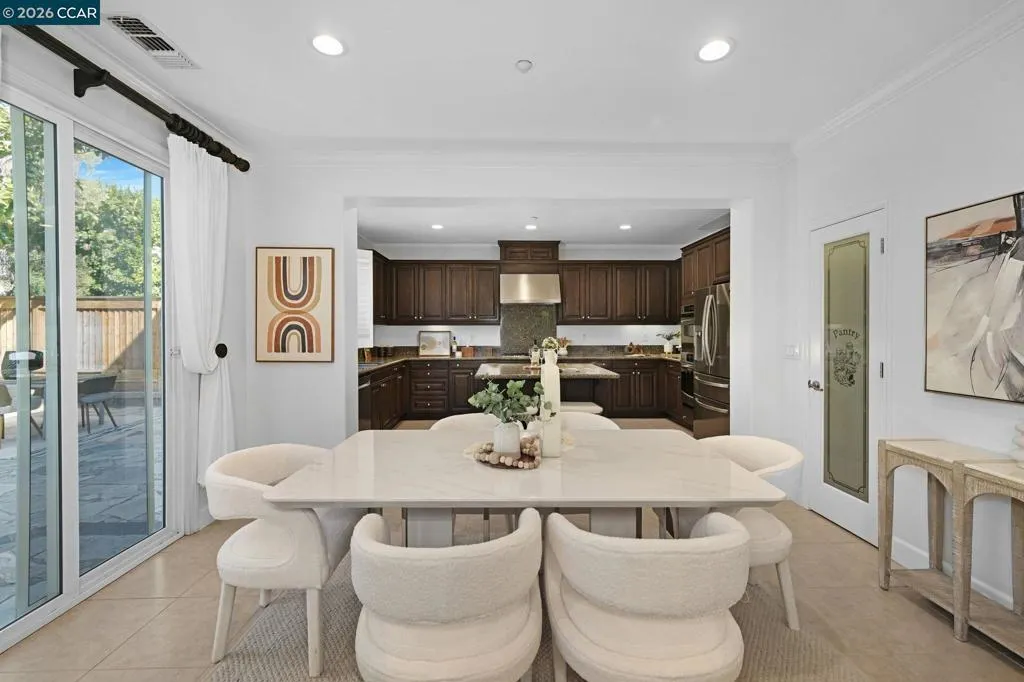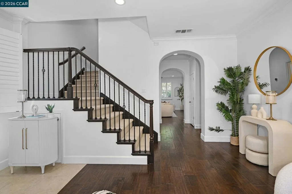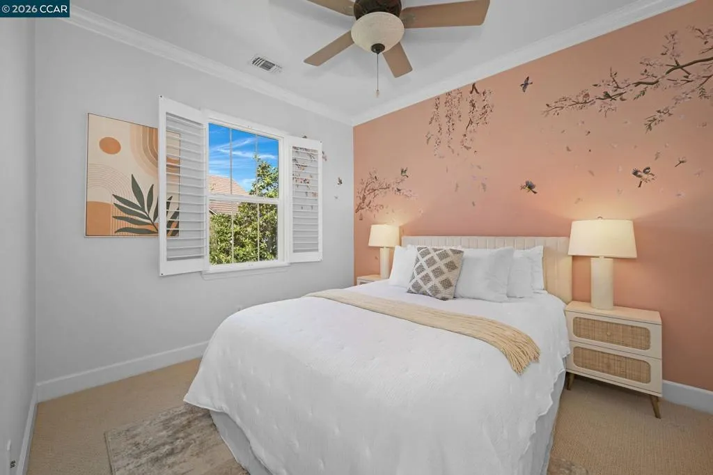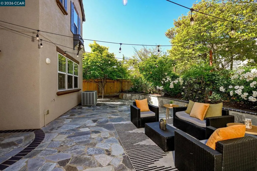 Stunning EAST FACING luxurious 5-bedroom, 3.5-bath residence on a very QUIET CUL-DE-SAC blends modern style with functional living. Features a bright formal living room with engineered hardwood floors and an open-concept layout connecting the spacious family room with gas fireplace, dining area, and gourmet kitchen. The kitchen offers beautiful granite countertops, abundant cabinetry, a large center island, reverse osmosis filtration system, and stainless steel appliances with ABUNDANT NATURAL LIGHT throughout. Enjoy a spacious, peaceful and low-maintenance premium backyard highlighted by beautiful fruit trees. The luxurious spacious primary suite features a spa-inspired bathroom with soaking tub, walk-in shower, dual vanity, and a large walk-in closet. A versatile spacious fifth bedroom with full bath and sound system speakers offers flexibility for guests, office, theater or multi-generational living. Additional highlights are OWNED SOLAR SYSTEM PANELS, TESLA EV CHARGER, new interior and exterior paint, brand new designer carpet, plantation shutters on all windows, finished garage with custom cabinets and epoxy flooring, and ceiling fans throughout. Conveniently located near TOP-RATED SCHOOLS, shopping, dining, major freeways, and BART. Open House on Saturday 05/02/26 at 1:00-4:00pm Open House on Sunday 05/03/26 at 1:00-4:00pm