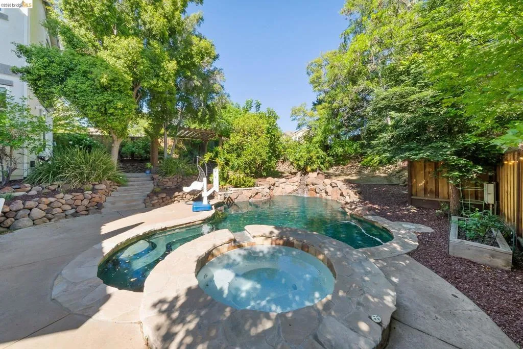 Welcome to 2692 Presidio Drive, a beautifully updated 5-bedroom + den, 3-bathroom home in the sought-after Shadow Lakes community. Situated on a 7,763 sqft lot with approximately 2,908 sqft of living space, this exceptional residence offers comfort, style, and functionality throughout. From the moment you arrive, you’ll notice the attractive curb appeal, tile roof, finished 2-car garage, pellet/gas-burning fireplace, views of Mount Diablo, and prime location near top-rated schools, shopping, dining, and parks. Inside, the home has been extensively remodeled with fresh paint, luxury vinyl plank flooring throughout, a fully remodeled downstairs, and spacious living areas ideal for everyday living and entertaining. The stunning kitchen is the heart of the home, featuring quartz countertops, an oversized island with seating, brand-new stainless steel appliances, abundant cabinetry, and modern finishes. Additional upgrades include dual-zone AC, a new water heater, owned solar for both the home and spa, and a security system with cameras. Step outside to your private backyard retreat with a sparkling in-ground pool and spa with lighting and water features, a gas line for a future outdoor kitchen, mature fruit trees, and a garden bed. Come tour your dream home now!