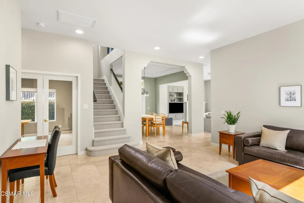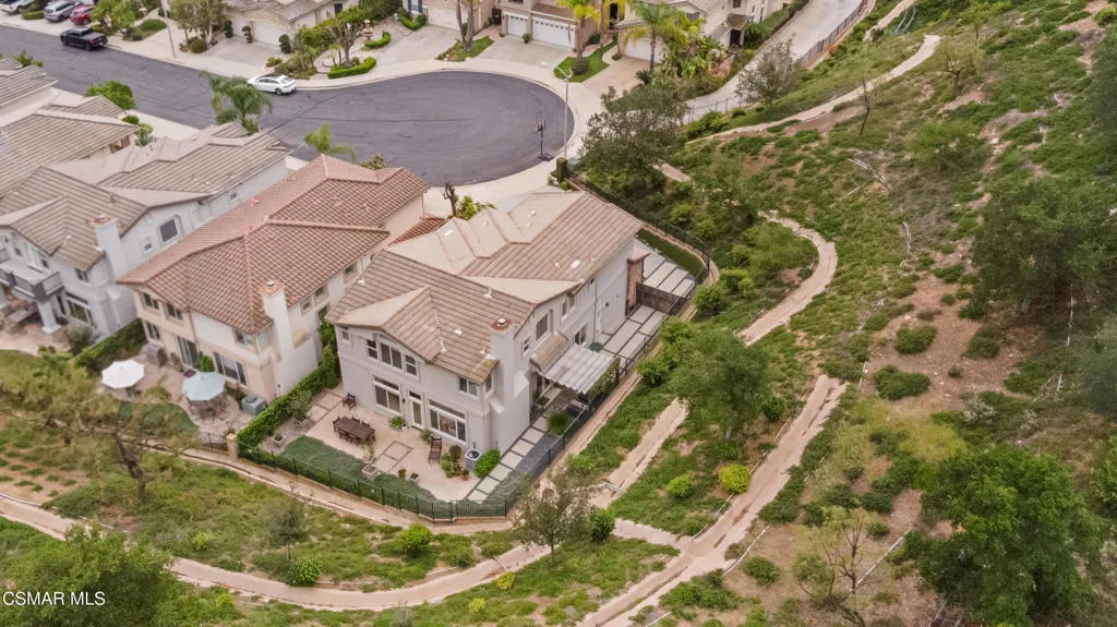 Situated on one of the most coveted lots in Bellagio at Lang Ranch, this highly sought-after Plan 3 residence is tucked away on a cul-de-sac and nestled against a serene natural setting, creating a peaceful and welcoming environment. The homeowners have approached every upgrade with exceptional attention to detail and care, resulting in a home that is both elegant and thoughtfully enhanced.Featuring a dual staircase, the home offers 3 bedrooms and a spacious loft upstairs, along with a downstairs bedroom currently utilized as an office. A full 3-car garage, extended driveway, and side access for additional parking further elevate this exceptional property.Upon entry, you are immediately captivated by the home's refined tones, clean aesthetic, and seamless flow--beautifully complemented by natural surroundings framed through each window. You are drawn into the welcoming living room, which transitions effortlessly into an intimate dining area highlighted by French doors that open to a cozy sitting space. The removal of the former pony wall between the dining and family rooms creates an open, engaging floor plan, ideal for both everyday living and gatherings with family and friends.The open design continues into the beautifully updated kitchen, creating a natural gathering space at the heart of the home. Thoughtfully redesigned with both style and function in mind, the kitchen showcases classic shaker-style cabinetry, granite countertops, a Viking Professional 6-burner range with hood, a built-in refrigerator, and dual Fisher & Paykel drawer dishwashers. An expanded center island with additional storage offers the perfect setting for casual dining and entertaining.Overlooking the family room, this space is further enhanced by picturesque views of the backyard, where the home's exceptional setting truly comes to life. Surrounded by a serene natural backdrop, the outdoor space offers a peaceful and private retreat--ideal for relaxing, entertaining, or simply enjoying the beauty of the surroundings.Upstairs, a versatile multi-purpose loft offers endless possibilities--perfect as cozy lounge, playroom, or media space--adding both flexibility and functionality to the home. Two generous secondary bedrooms are well-appointed and share a hall bath, providing comfortable accommodations for family or guests.The primary suite serves as a private retreat, showcasing stunning views and a sense of tranquility. The en-suite bath features two newly updated vanities that continue the home's cohesive design theme, blending style and comfort in a beautifully refreshed space.Additional improvements include a newer high-efficiency air conditioning system with four additional return air ducts, newer carpet, and fresh interior and exterior paint. The exterior has been thoughtfully enhanced with custom hardscape and landscaping, featuring water-saving irrigation and drought-conscious plantings for both beauty and efficiency.Bellagio is a gated community offering a pool, spa, and playground, all while being conveniently located near nearby parks, miles of hiking and biking trails, shopping, and award-winning schools. This is a rare opportunity to own a truly special home in one of the most desirable communities in Lang Ranch!