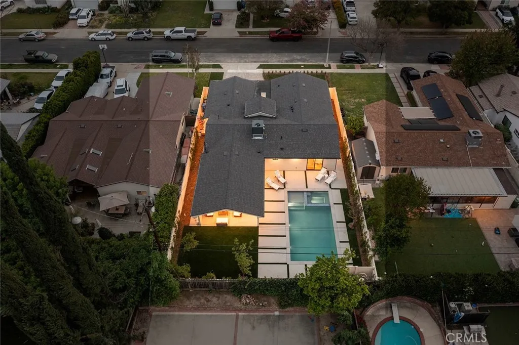 Gorgeous completely reimagined single story smart home desirably located adjacent to Walnut Acres. The expanded property truly feels like new construction as it was completely remodeled to the studs and boasts newly built pool, spa, and 220 SF covered patio. The front yard features large grass lawn, paver stone driveway that leads to the 2-car attached garage, and long covered front porch for added privacy. Step inside to find a completely open floor plan drenched in natural light featuring wide plank oak wood flooring throughout. The stunning kitchen features center island with second prep sink and breakfast bar seating, custom soft close cabinetry, Taj Mahal quartz waterfall counters, pantry space, and stainless smart appliances including double ovens and 5-burner stove with pot filler. The kitchen opens directly to both the dining area and spacious living room with built-in surround sound system and glass slider that opens to the yard. A guest powder bathroom is conveniently located off the entry near the living spaces. The primary suite is positioned perfectly to overlook the backyard and features large walk-in closet with custom built-ins and luxurious en-suite bathroom with dual sinks, designer tiling, and walk-in shower. There are three additional well appointed bedrooms, each with mirrored closets with custom organizers. One secondary bedroom has en-suite bathroom with walk-in shower. A large hall bathroom with tub and shower services the other two secondary bedrooms. There is direct access to the finished 2-car garage with epoxy flooring, recessed lighting, and built-in storage cabinets. The entertainer’s backyard is highlighted by a newly built heated pool & spa with wraparound lounge decking, 220 SF covered patio great for outdoor dining, synthetic lawn for play, and newly planted ficus plants + several fruit trees. Additional upgrades per seller: all new HVAC/linear venting, new 200 AMP electrical panel, new roof, new tankless water heater, all new plumbing, new Milgard windows, new exterior drainage, fire sprinklers, and smart home tech including camera system, alarm system, built-in Wi-Fi extenders, and Ring. Adjacent to Westfield Mall/Village, Calabasas Commons, Warner Center with the new Rams Village in development, local parks/hiking trails, & zoned for award-winning El Camino & Hale charter schools.