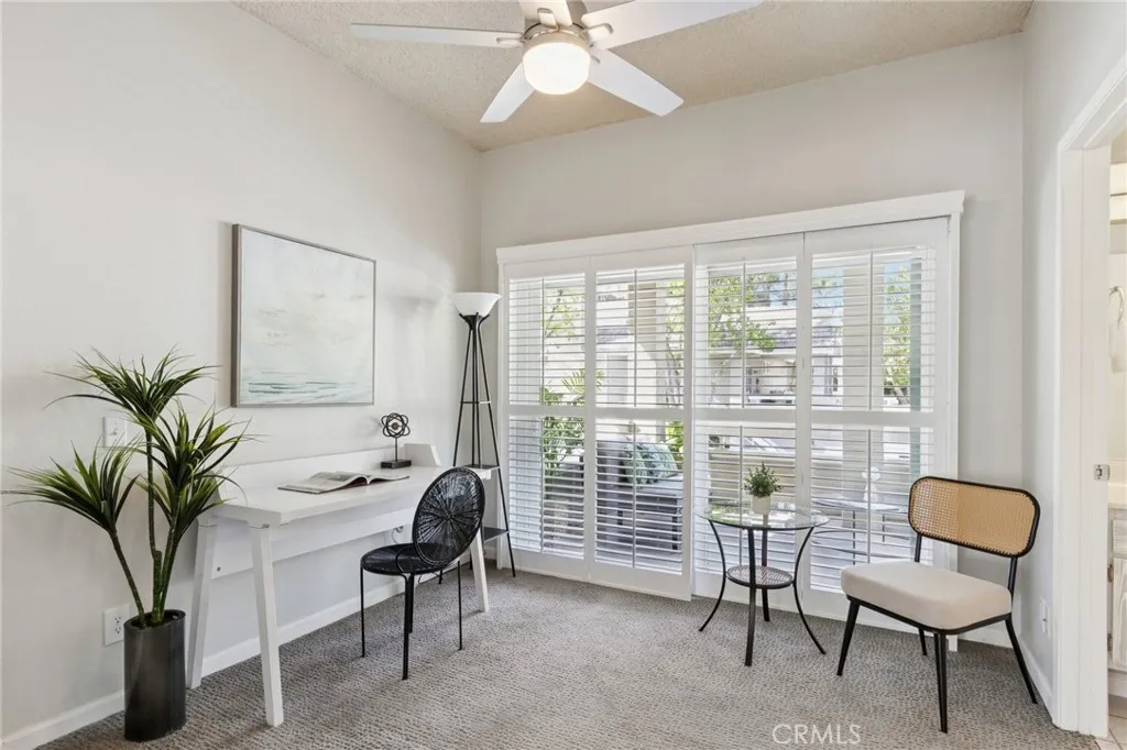 Welcome to Arbor Park – a gated community in the heart of Valencia! This beautiful single-level condo the top floor offers 2 bedrooms, 2 full bathrooms, a private garage, and a full-size laundry room. Ideally located just steps from the pool, Unit 62 at 26107 McBean Pkwy boasts soaring vaulted ceilings and an abundance of natural light. The kitchen features sleek stainless steel appliances and opens seamlessly to the dining area and private patio – perfect for BBQs and entertaining. The primary suite offers a peaceful retreat with ample closet space and an en-suite bathroom with dual sinks and generous storage. The second bedroom includes a custom Murphy bed and a direct connection to a full bathroom, making it ideal for guests or a home office. Additional highlights include plantation shutters, central HVAC, and guest parking throughout the community. Enjoy the unbeatable location – walking distance to the Summit Park, scenic Paseos, Whole Foods, and Granary Square. Just minutes from College of the Canyons, CalArts, and easy freeway access.
