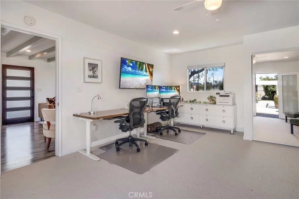 Located in Long Beach's Wrigley neighborhood. Great location, near transportation corridors (405/710), in a very accessible area of Long Beach. This is one of North Wrigley's finest homes! Classic mid-century vibe, with modern touches throughout. Beautifully situated on a large corner lot, tree-lined streets. 3 bedrooms, 2 full baths, nice primary suite, and 1,600+ square feet of living space. All features have been recently updated and improved, this home needs nothing but a new owner! Newer windows, brand new roof, new paint inside and out, fresh carpet. Gorgeous updated kitchen - very functional with large island, pantry, and newer cabinets and appliances. Great French Doors from dining room, primary suite, and 3rd bedroom/office area. The layout is great for entertaining, working from home, and comfortable living. Quality is evident throughout this lovely home, with tasteful upgrades executed with abundant pride of ownership. Great location in the North Wrigley neighborhood, plenty of street parking, plus 2-car garage. Near transportation corridors, and just a quick drive to Bixby Knolls and Virginia Country Club. Great restaurants and shopping nearby, quick drive to beaches.