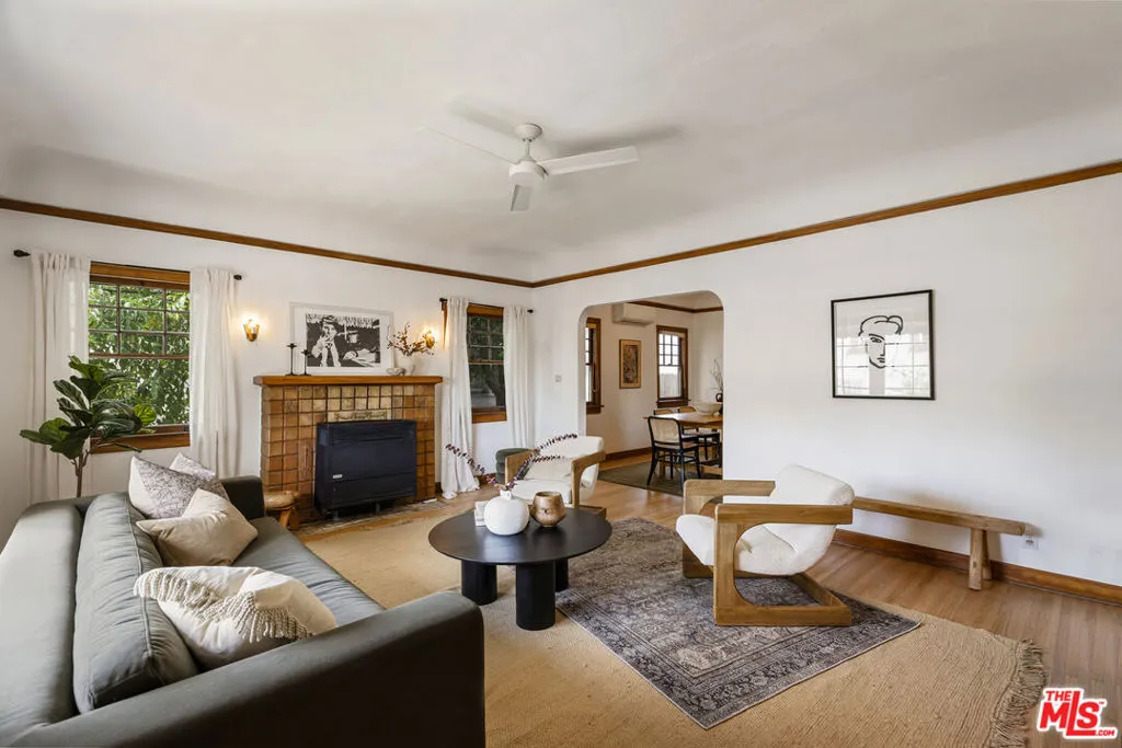 Charming & spacious Mediterranean 1920's New York style apartment that feels like a spacious home close to Los Feliz village. Over 1200 square feet includes living room w/high coved ceilings, formal dining room, breakfast room, laundry room. Period kitchen w/ ample cabinetry & storage, vintage stove & new retro fridge. One large bedroom, vintage tile bath/shower + den/office. Gorgeous rich old-world charm and original details, impeccable hardwood floors, mahogany doors w/crystal doorknobs, high ceilings, unpainted oak molding, original wood windows. Light & bright with great flow. Air/ Heat. One car garage plus driveway parking space. Vintage stove, new retro fridge & kitchen floors. One block to Hillhurst and all the amazing restaurants, stores & shops Los Feliz Village has to offer.