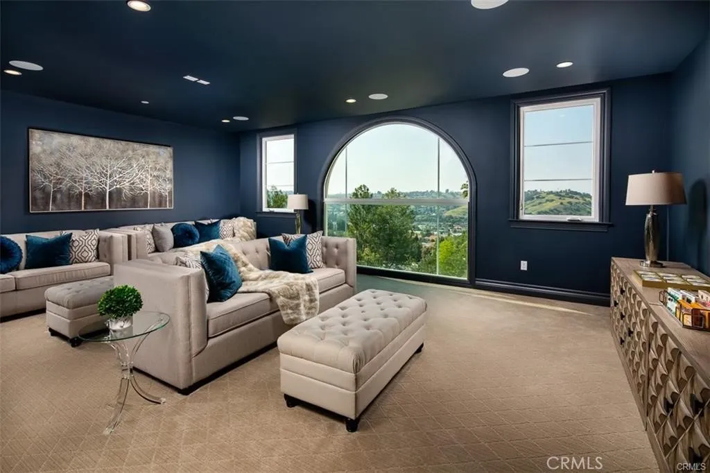 Experience the pinnacle of luxury living in this majestic Tuscan-inspired estate, nestled within the prestigious gated community of The Country Estates in Diamond Bar, CA. Crafted by Grandway, this stunning six-bedroom residence showcases architectural splendor with elegant arches, colonnades, and meticulous details throughout. Situated on approximately 63,000 square feet of meticulously landscaped grounds, this opulent three-story home offers quality finishes and exquisite craftsmanship. Step into the grand foyer through dramatic double doors, where soaring 30-foot ceilings, elegant marble floors, and a beautiful iron staircase welcome you. Entertain guests in the formal living room, boasting French doors that open to a full-length terrace overlooking panoramic city views. Indulge in culinary delights in the gourmet kitchen, complete with a large island, marble counters, custom cabinetry, and high-end Thermador appliances. The main level also features a guest bedroom, study/home office, mudroom, and elevator leading to the upper floors. Upstairs, discover a spacious family room, game room, home theater, laundry room, junior suite, and two additional ensuite bedrooms. The secluded Primary bedroom suite on the top floor offers a private living room, double-sided marble fireplace, and a step-out balcony with breathtaking vistas. Luxuriate in the spa-like Primary bathroom, featuring a freestanding tub set against bay windows, two walk-in closets, his and her vanities, and a steam shower. Additional highlights include hardwood floors, a three-car garage with epoxy floors, three tankless water heaters, five A/C condensers, and state-of-the-art home automation. Outside, serene terraces, balconies, and patios provide the perfect setting for outdoor living and entertaining. Community amenities include two gated entrances, 24-hour security patrol, clubhouse, tennis/basketball courts, pool, and walking trails. Don't miss this opportunity to own a piece of luxury in Diamond Bar's most sought-after enclave. Schedule your private viewing today!