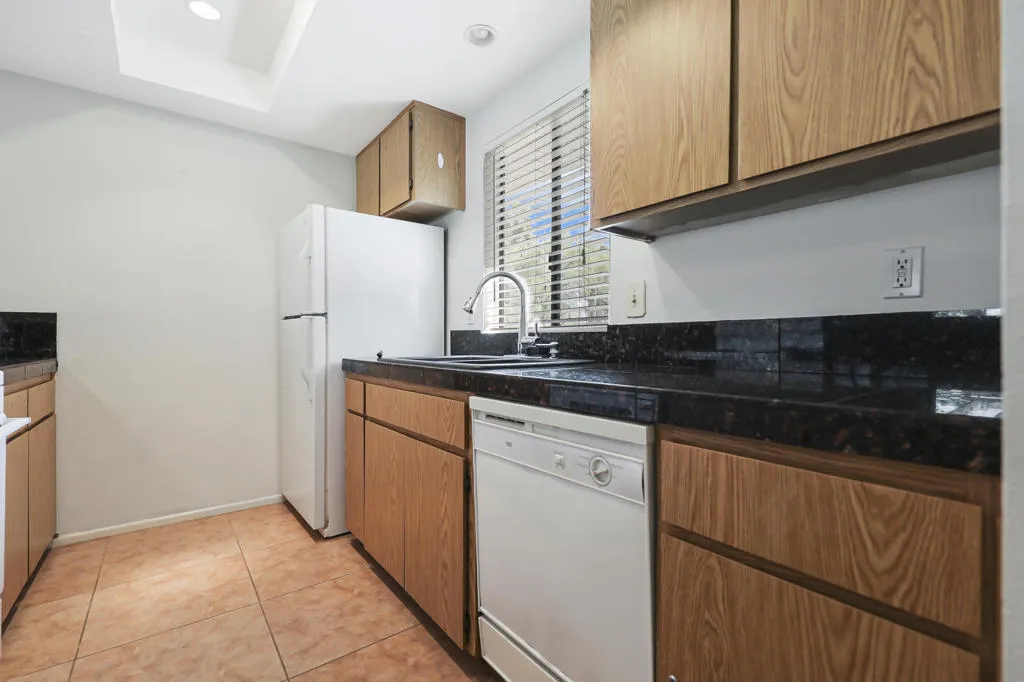 Here's your perfect desert escape at Palm Desert Resort Country Club--just the right size, affordable, and ideal for weekend getaways or a seasonal retreat from the cold. Whether you're seeking a change of scenery or a relaxing escape from city life, this charming condominium offers the ultimate low-maintenance lifestyle.This 1-bedroom home with a converted den/2nd bedroom provides flexible space for guests or a home office. Enjoy an open kitchen layout and a spacious patio overlooking lush greenery--perfect for soaking up the sun or hosting a BBQ with friends.With a little TLC and updating, you can transform this property into your own personalized desert haven.Located within a guard-gated community, residents enjoy access to a wide range of amenities: a public golf course, pickleball, bocce ball, tennis, and 20 pools and spas. The vibrant social clubhouse makes it easy to meet new friends or gather with old ones.Beyond the gates, you're just minutes from everything the desert has to offer--dining, shopping, cinemas, casinos, concerts, and art walks. Enjoy world-class events like Modernism Week, Coachella, Stagecoach, the Indian Wells Tennis Tournament, and the Palm Springs International Film Festival--all without the need for a hotel stay.Complete with a 2-car garage and endless potential, this is your opportunity to own a slice of the desert lifestyle--your go-to getaway for relaxation, recreation, and sunshine. Virtual furniture in photos.