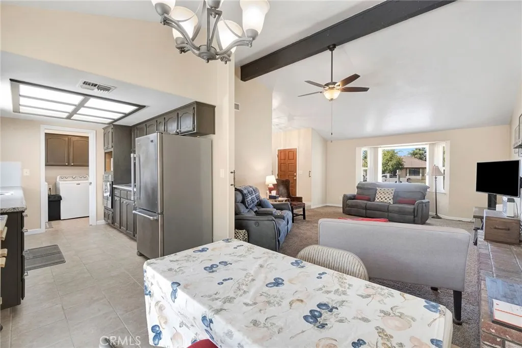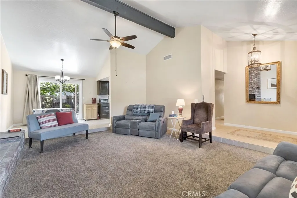 Located at 2700 Driftwood Dr in Madera, CA, this well-maintained home offers approximately 1,506 sq ft, featuring 3 bedrooms and 2 bathrooms with a functional layout designed for everyday living. The main living area is open and inviting, highlighted by vaulted and beamed ceilings, a cozy fireplace, and plenty of natural light, creating a comfortable central space for relaxing or gathering. The kitchen is equipped with stone countertops, shaker-style cabinetry, tile backsplash, double ovens, stovetop, and a high-end refrigerator, offering both style and functionality for daily use and entertaining. The home includes three bedrooms, including a primary suite with a private ensuite bathroom, while the additional bathroom features a walk-in shower. A dedicated laundry room adds convenience to the interior layout. Exterior features include a tile roof and a fenced backyard with a patio and outdoor dining area, providing space for outdoor use, gatherings, or quiet evenings at home. Located in an established Madera neighborhood with access to local amenities, this property offers a balance of comfort, layout, and livability. Buyer to verify all information to their satisfaction.