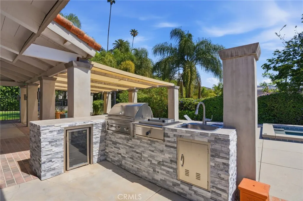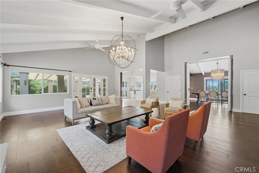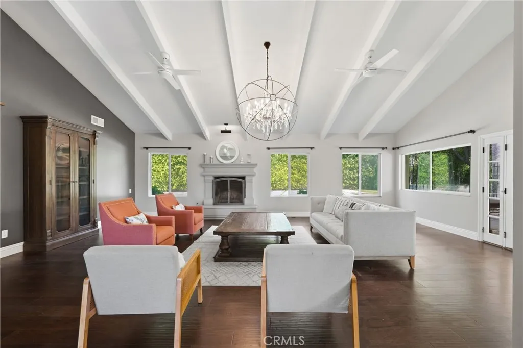 Spectacular Single Story House with City Lights & Mountain Views located in the gated community of Silent Ranch Estates in North Glendora. Exquisite style & modern finishing’s & materials are evident thru-out this 4 bedrooms and 5 bathrooms home. Property was completed renovated back in 2018 with hardwood & tile floors, open beamed high ceilings, gorgeous chandeliers & light fixtures, custom paint, home automation and camera system. Double door entry welcomes you to a gorgeous foyer with marble floors, French doors, formal living room with beautiful windows & cozy fireplace, amazing family/great room with hardwood floors, fireplace & French doors, gourmet kitchen with marble island, stainless appliances including Thermador double ovens, 6 burner gas cooktop, formal dining room with French doors & gorgeous modern chandelier. Private master suite with a separate retreat, French doors, large walk-in closet with custom built-in’s, luxurious master bathroom with marble oversized walk-in shower, stand alone bathtub & double vanities. Second master suite with walk-in closet & private en-suite bathroom with double sink vanity, stand-alone bathtub & large shower. Two additional bedrooms with walk-in closets & en-suite bathrooms, a gorgeous powder room & a spacious loft with spiral staircase that can be used for office, kids or workout rm. Private backyard with beautiful city lights views, large lawn area, pool & spa with waterfall, built-in BBQ & covered patio/entertaining area. Gated driveway with 5 car tandem garage, RV Parking & room for extra cars. Convenient location puts you near all Glendora finest schools, supermarkets, restaurants and much more!