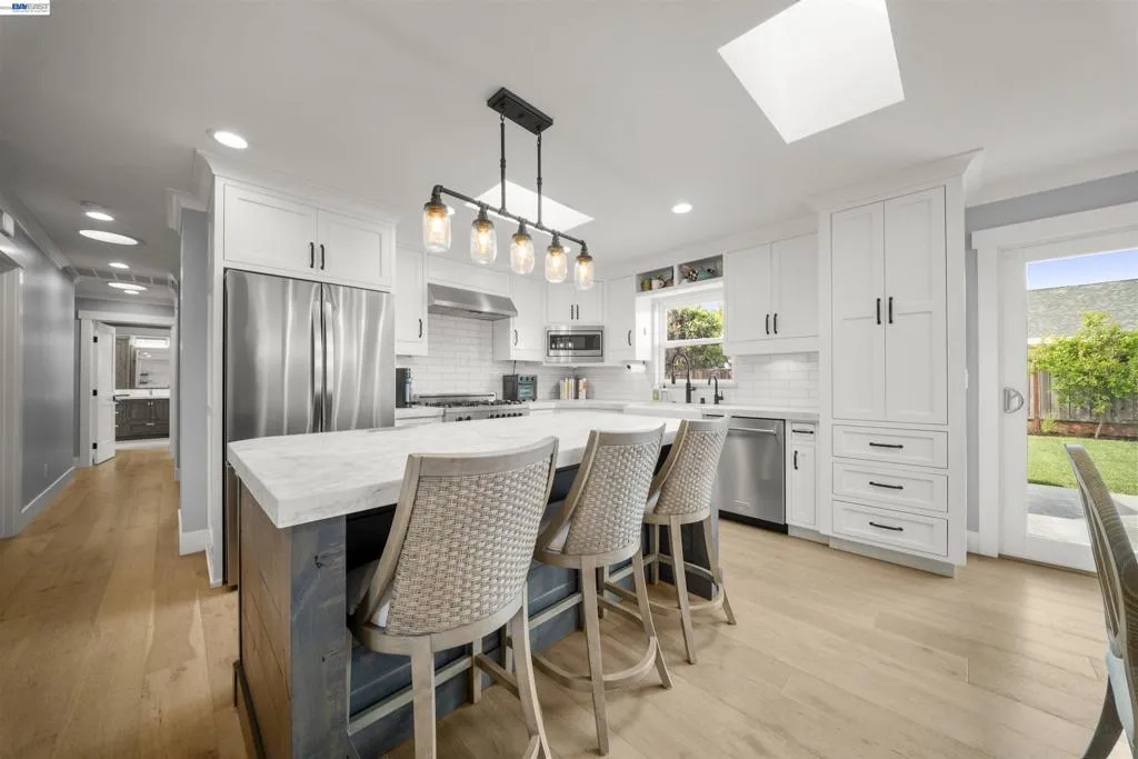 Exquisitely reimagined modern craftsman with refined farmhouse influence, masterfully redesigned in 2018 by acclaimed South Bay/East Bay designer Brian Ganz. Rebuilt to the studs with permits, this residence was thoughtfully expanded into a sophisticated 3-bedroom, 2-bath home showcasing exceptional craftsmanship and curated finishes throughout. The interior is defined by abundant natural light, skylights, and sun tunnels, complemented by plantation shutters and elegant oak-style flooring. A designer kitchen anchors the home with bespoke cabinetry, farmhouse sink, premium stainless appliances, and a striking freestanding Italian range, enhanced by a custom knotty alder island and built-in wine feature. Spa-inspired baths feature custom tilework, designer vanities, and luxurious appointments. Extensive upgrades include new electrical, plumbing, windows, roof, HVAC system, and full insulation, delivering modern comfort with timeless style. The exterior presents a polished aesthetic with board and batten siding, stacked stone accents, and curated landscaping. Recent 2026 enhancements include new concrete driveway, patio, expansive lawn installation, irrigation, drainage systems, and fresh interior/exterior finishes. This home offers elevated design and enduring quality!