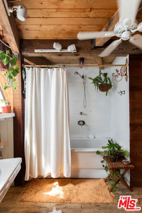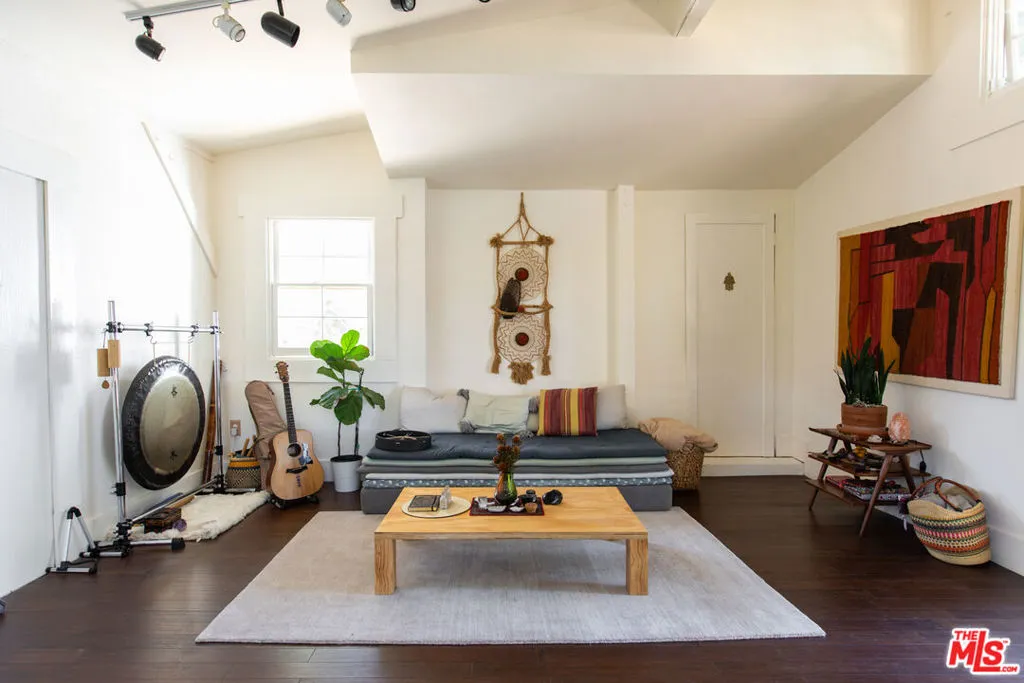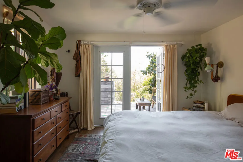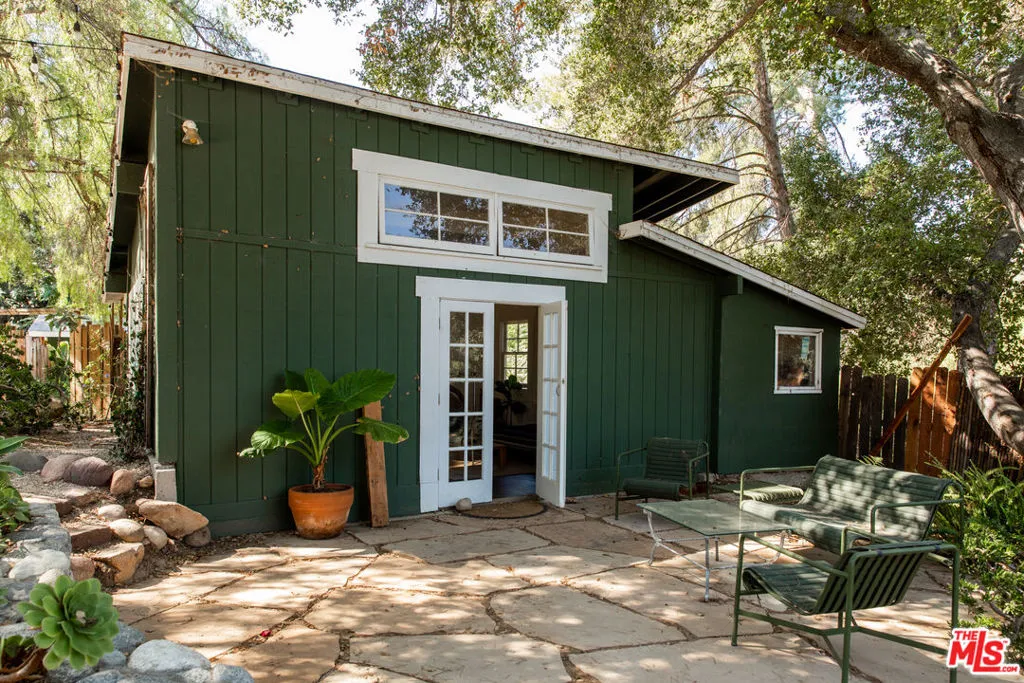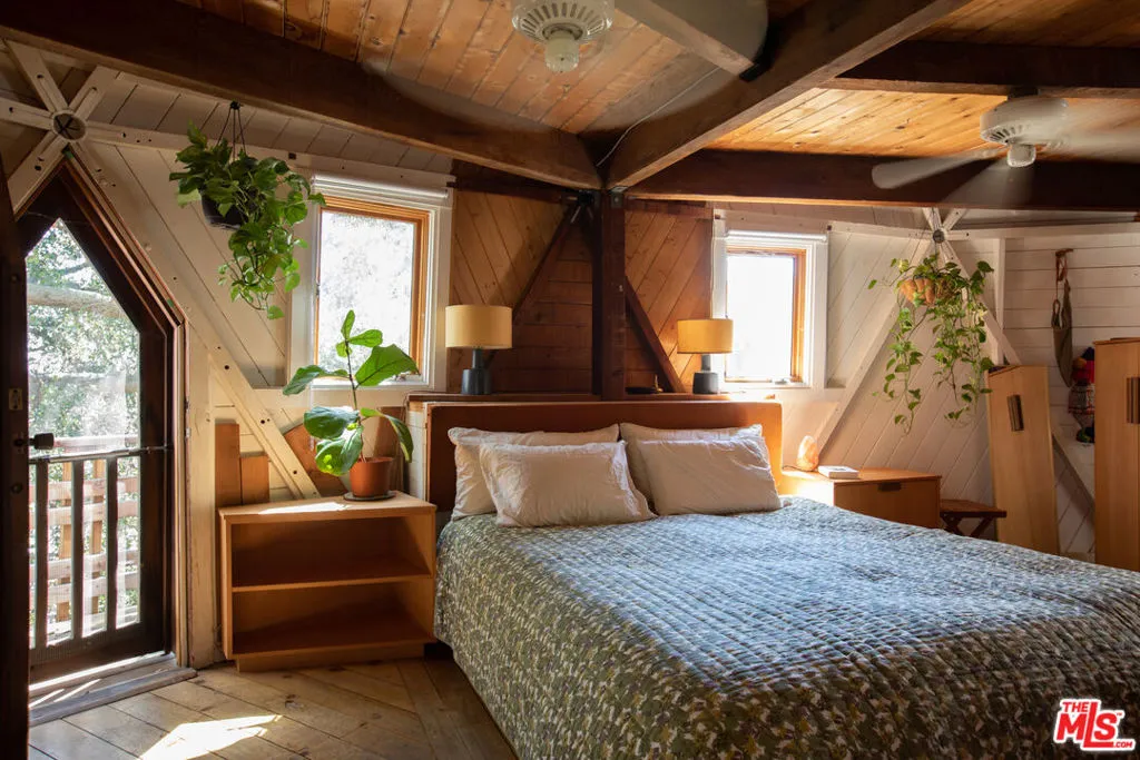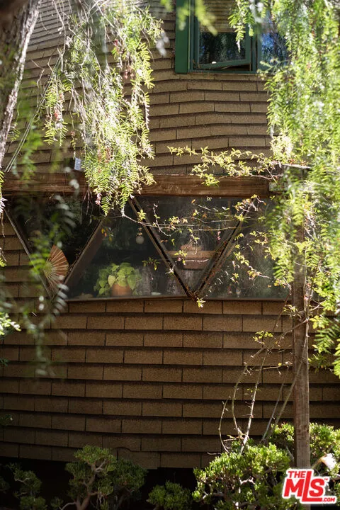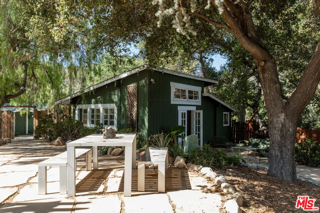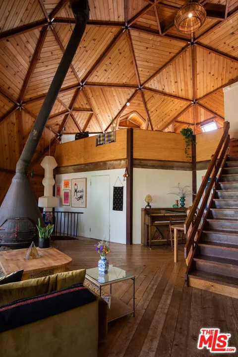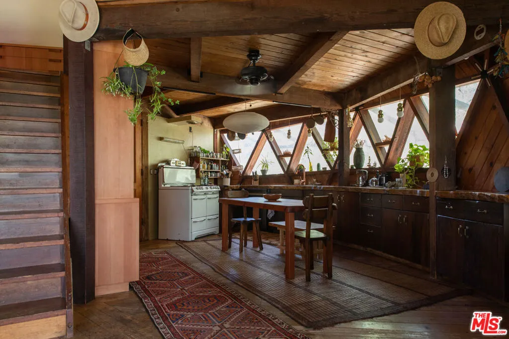 This Geodesic Dome home is all magic. Every corner is thoughtfully designed, creating beautiful sanctuary-compound living. The primary bedroom and bathroom are on the main floor with a guest suite on the lower floor (which is currently being used as a storage space). The upper loft area features an open bedroom space, bathroom, and living room area. The kitchen features wood beams that are said to be from the pier at Pacific Ocean Park and has recently been redone with finely designed custom cabinetry. The yard has landscaped paths leading to shaded nooks, fruit trees, a sauna, hot tub, outdoor shower, and cold plunge pool. There are three structures, including a one-bedroom, one-bathroom guest house, a large open studio, and a workshop, which is currently being used as a music studio. This property is the Topanga dream!