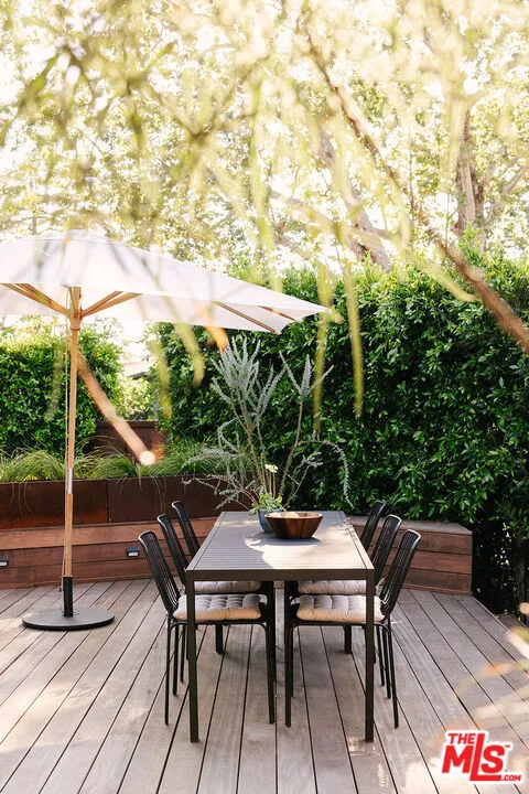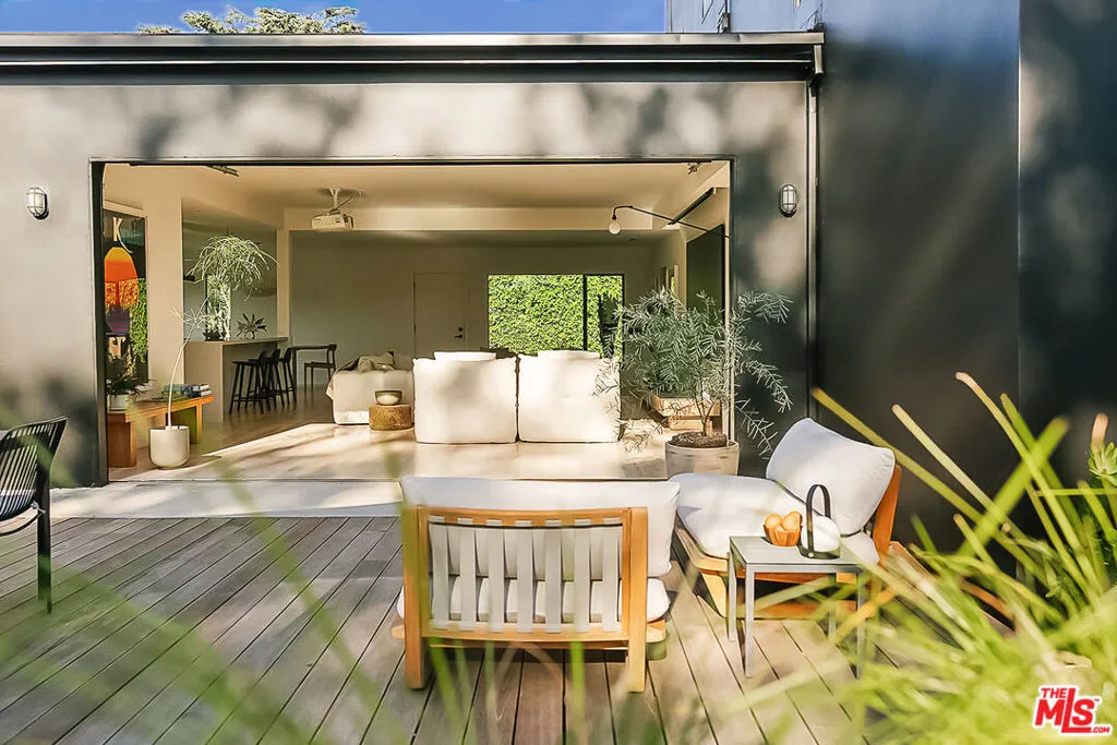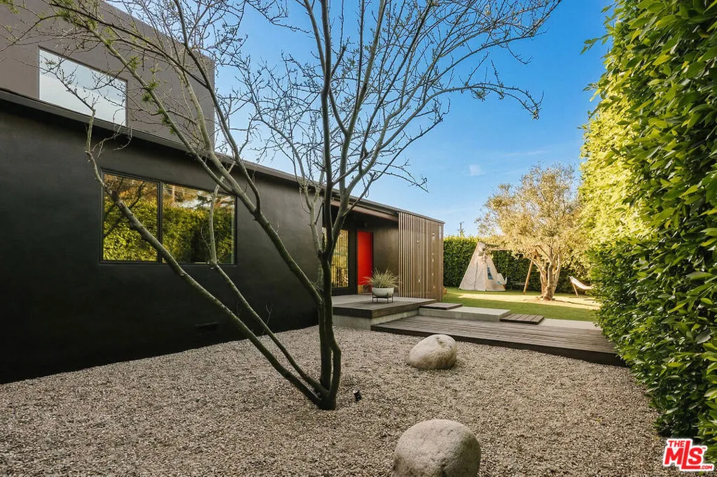 A Rare, Private, Modern Architectural in the Heart of West Los Angeles. Bold architectural lines, a striking matte black facade and a fully hedged and gated perimeter unite to form this exceptional, private residence. Remodeled and thoughtfully reimagined and expanded from its original footprint. Designed around an open floorplan that flows effortlessly from living to dining to kitchen, indoors to outdoors, capturing nature, the Los Angeles light and lifestyle. A dramatic glass door opens to a large entertaining deck that flows seamlessly into expansive yard space that surrounds the property. Composed of aesthetically designed, drought tolerant landscaped gardens and turf wrapped in lush mature hedges, creating a serene and private, idyllic setting for gatherings, play, pets, and quiet reflection. Inside, wide plank wood floors and glass throughout capture natural light and volume, creating a soulful escape. The kitchen is sculptural and functional, anchored by a waterfall island and enhanced by an adjacent pantry that provides additional storage and discrete small appliance organization, a thoughtful detail elevating daily living. The living room and adjacent dining room offer open spaces for everyday living and entertaining, with ample wall space to feature art and glass throughout that frames the landscaped outdoor gardens, bringing nature and greenery indoors. Three spacious bedrooms and a full bathroom complete the main level, offering flexibility for family, guests or office needs. Upstairs leads to the separate primary retreat. A fantastic, light filled, open suite, designed for serenity and restoration. Featuring a spacious, custom, walk in closet and luxury spa bathroom with a freestanding porcelain tub, oversized enclosed steam shower, towel warmer and dual sinks set in a floating cabinet, with generous proportions throughout. A special space to restore and recharge. Outside, a detached shed provides additional, organized storage space, while the gated driveway, hedged exterior and detached two car garage enhances privacy and security. Close and convenient to the freeways, Silicon Beach, UCLA, St. John's Health Center, and a short distance to the beaches, bike paths, Stoner, Douglas and Airport Parks, and the best dining, shopping, fitness and connectivity the Westside lifestyle has to offer, including the Sawtelle District, Alana's Coffee Roasters, Jyan Isaac Bread, Erewhon, The Mar Vista Farmer's Market. Equinox, and the new Lazy Acres market that is coming soon! This is the perfect Los Angeles home.