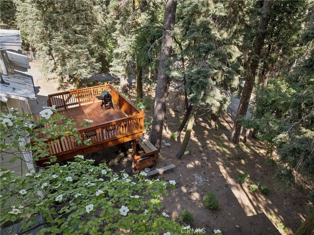 Welcome home to this fully renovated modern mountain retreat, where thoughtful design meets effortless comfort. This stunning three-story escape offers a rare and functional layout, with a bedroom and bathroom on every level—perfect for privacy, guests, or multi-generational living. From the moment you arrive, you’ll notice the inviting curb appeal, ample parking options, and a spacious 16x16 deck that sets the tone for what’s inside. Enter through the formal deck entry or enjoy the convenience of direct access from the driveway. The lower level has been completely reimagined, showcasing a beautifully redesigned space that must be seen to be appreciated. At the heart of the home, the kitchen has been tastefully updated with rich espresso cabinetry, granite countertops, a tile backsplash, and appliances—ready for everyday living or entertaining. The living room is a showstopper, featuring open-beam vaulted ceilings, warm knotty pine accents, and a second fireplace that creates a cozy yet elevated mountain ambiance. Natural light and serene forest views surround you, especially from the kitchen, deck, and charming dining area window. Throughout the home, barn doors and industrial-style lighting add a distinctive modern edge, reflecting the attention to detail poured into every upgrade. Many improvements have been made to this home since 2021. Ideally situated to offer peace and privacy, yet just 4 miles from Crestline and approximately 15 miles from the base of the mountain, this home delivers the best of both worlds. Come experience where mountain charm meets modern living.