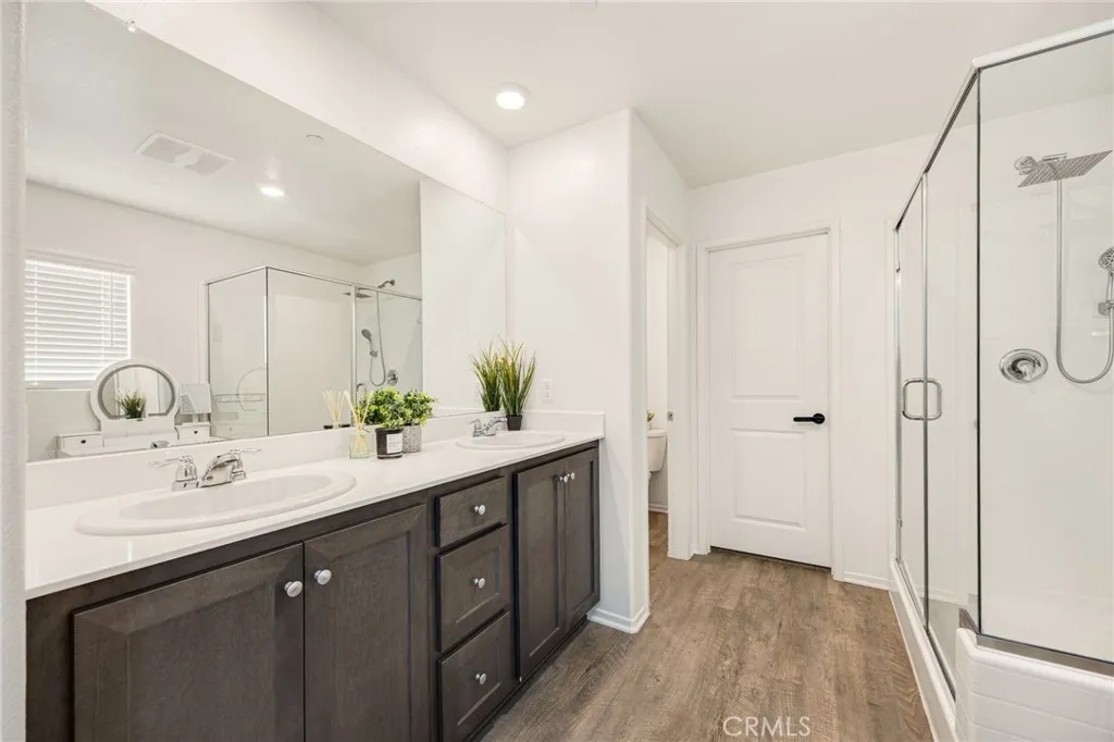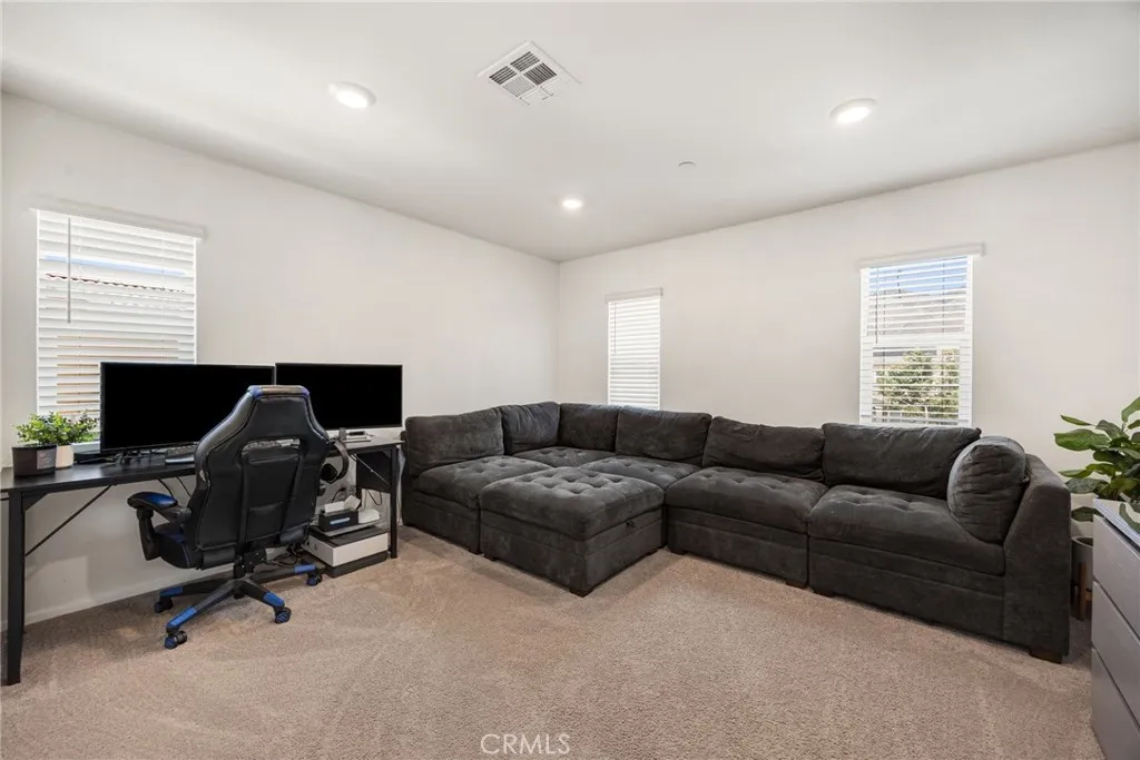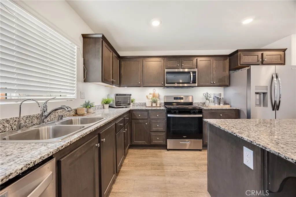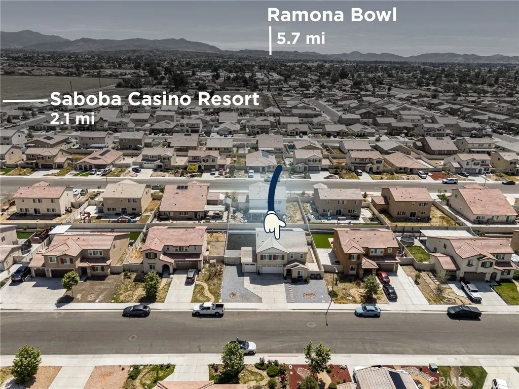 Live large without the large price tag! Welcome to this spacious 5-bedroom, 3-bathroom home located in the desirable Starling Pointe master-planned community, featuring paid-off solar and no HOA. Situated on an approximately 7,200 sq ft lot, this home offers more space and privacy between neighbors, something buyers truly value. As you enter, you’re greeted by stylish board and batten accent walls that set the tone for the rest of the home. The open-concept layout flows seamlessly into the main living areas, where the kitchen is equipped with stainless steel appliances, natural stone granite countertops, abundant cabinetry, and a large center island; perfect for entertaining or everyday living. The expansive great room provides plenty of space for both dining and lounging. A highly desirable first-floor bedroom and full bathroom offer flexibility for guests, multigenerational living, or a home office. Upstairs, you’ll find an enclosed loft that can easily serve as a media room, office, or even an additional bedroom. The generously sized primary suite features a private ensuite bathroom with a walk-in shower. Three additional bedrooms and a secondary bathroom with dual sinks make morning routines easier for everyone. Step outside to a large backyard complete with a covered patio and extended concrete ideal for gatherings, play, or future customization. The oversized side yard with double gates offers potential RV parking or convenient access for additional improvements. Conveniently located within walking distance to local schools and just minutes from shopping, dining, and major commuter routes including the Ramona Expressway with easy access to the 60 and 215 freeways. Don’t miss your opportunity to own a spacious, move-in ready home with valuable upgrades at an incredible price!