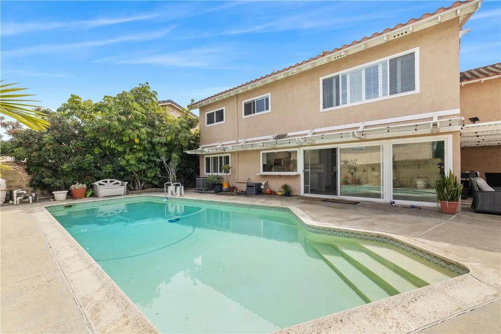 Ideally located on a quiet Cul-de-sac, this move-in ready 5-bedroom, 2.5-bath Larwin home offers approximately 2,600 sq ft of updated living space in a highly sought-after neighborhood, featuring top-rated schools including Landell Elementary, Lexington Jr. High, and Oxford Academy.The home's charming curb appeal will immediately catch your eye. From the drought friendly landscaping, to the inviting front porch. Thoughtful upgrades include smooth, retextured ceilings with recessed lighting, new vinyl flooring upstairs, ceiling fans, new A/C pump, electrical panel, and solar panels (leased). Wall-mounted outlets create a clean, modern look throughout. The expansive bonus room above the garage is fully renovated, offering flexibility as a 5th bedroom, media room, or office. All the bedrooms are sizable. The Primary bedroom is a true Primary Suite. Offering an extra large bedroom, walk-in closet, and an ensuite bathroom. Enjoy seamless indoor-outdoor living with sliders to a pergola-covered patio and private backyard with a large Pool, perfect for entertaining. Additional highlights include Spanish tile roof, Dual-pane windows, Copper Plumbing, and a 3-car garage. Walking distance to Landell Elementary, ability to test to the nationally ranked Oxford Academy, close to amazing restaurants, shops like Trader Joe's, Costco, Mistuwa to name a few. A rare opportunity to enjoy the best of Cypress living - An exceptional location and a beautiful home come together in a truly special neighborhood. Welcome to 4395 Avenida Carmel and Welcome Home!